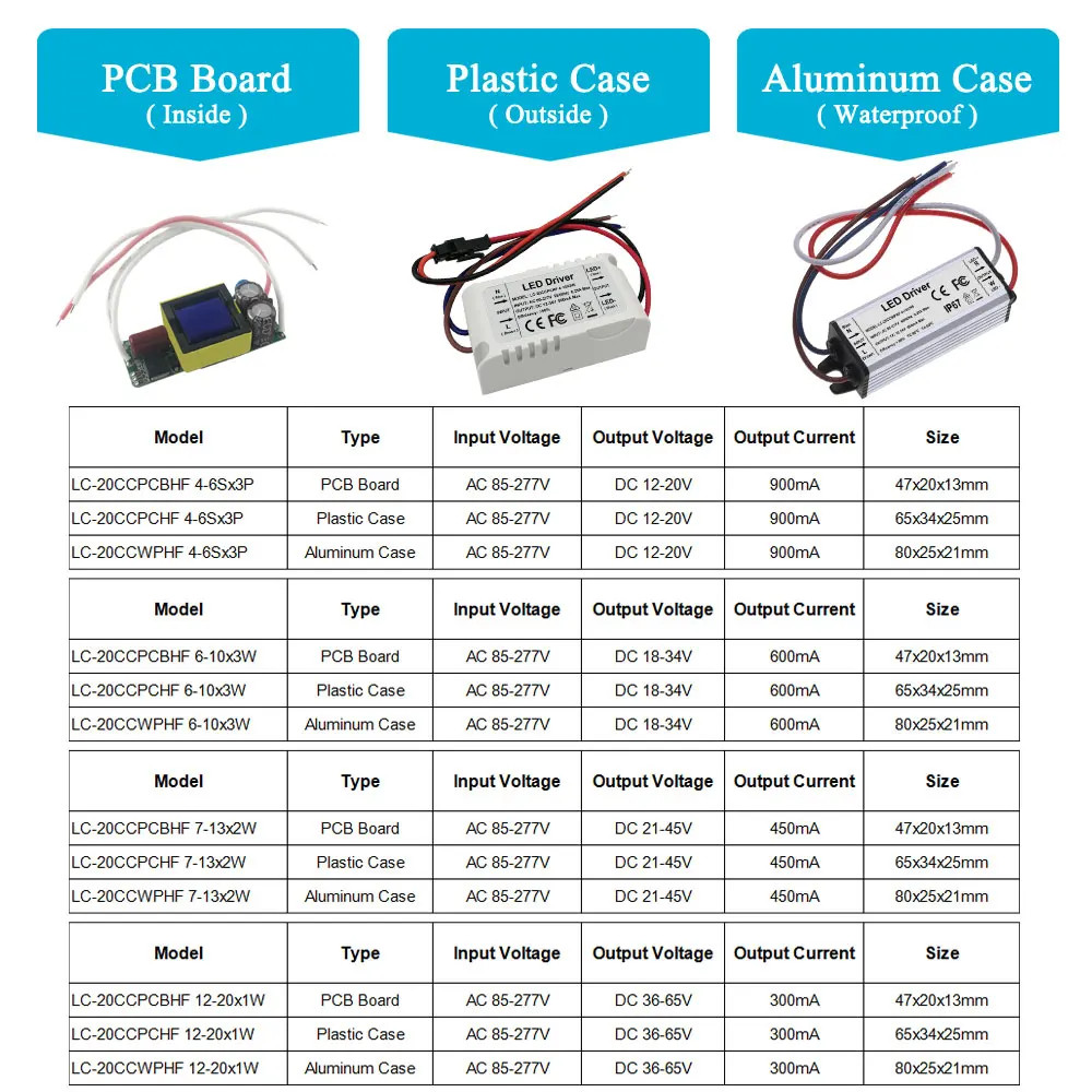 Блок питания 12 Вт 15 Вт 18 Вт 20 Вт 24 Вт, светодиодный драйвер 12-20 в 900 мА 18-34 в 600 мА 36-65 в 300 мА 12 15 18 20 Вт, трансформаторы для освещения