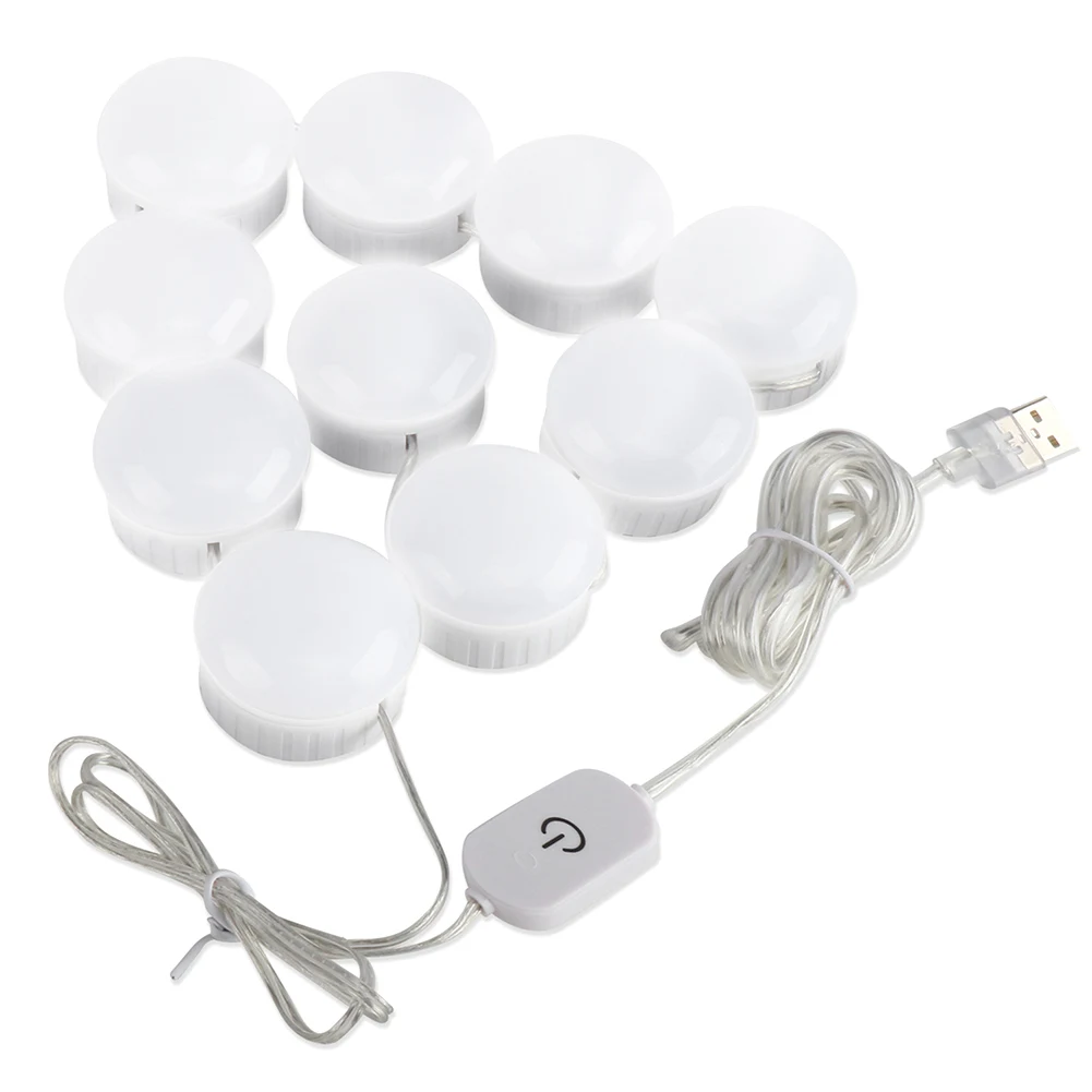 Набор лампочек для макияжного зеркала, 10 светодиодный гирлянд USB, Регулируемая яркость, косметисветильник свет, управление прикосновениями, лампа для зеркал