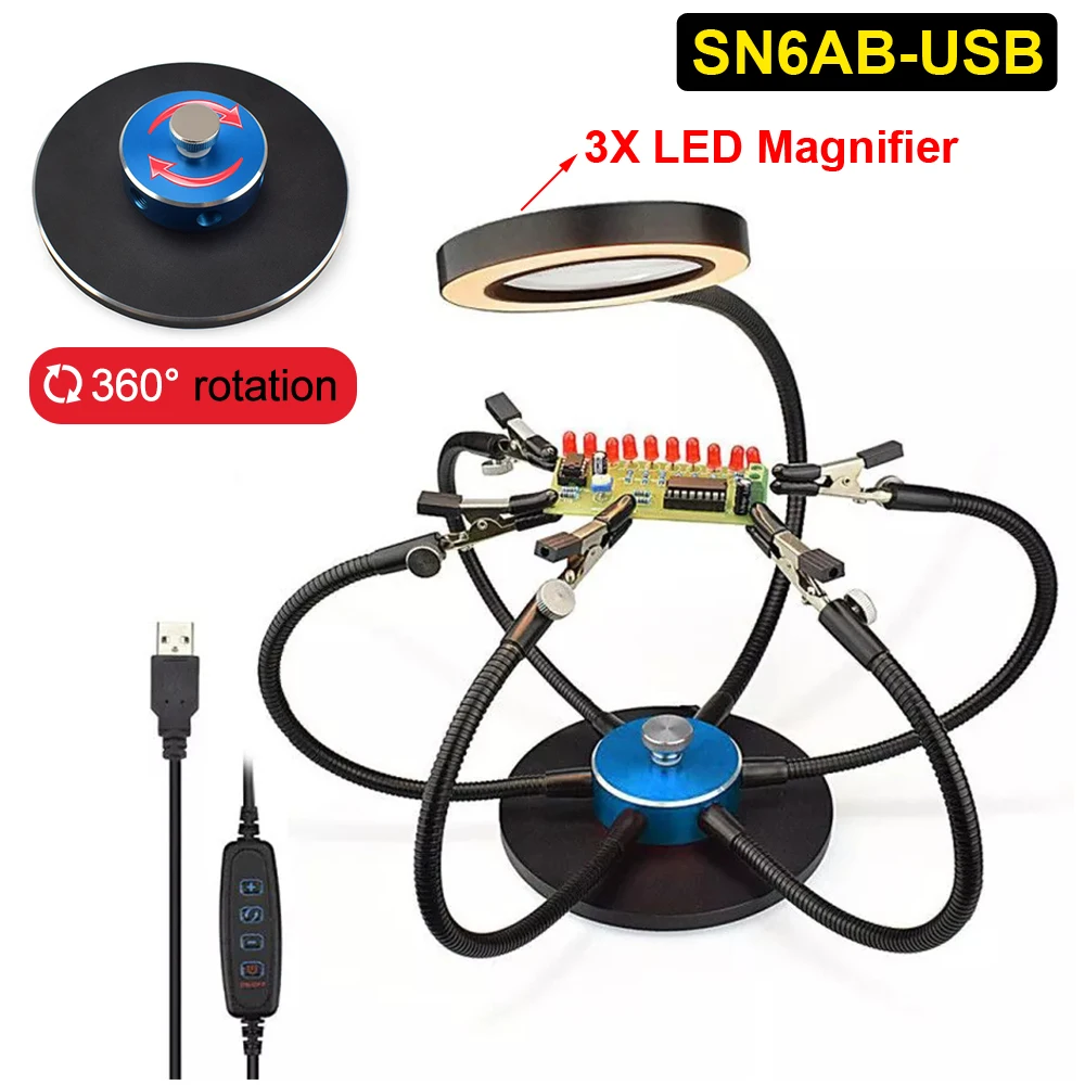 Держатель для печатных плат NEWACALOX, с 3-кратным увеличительным стеклом и поворотом на 360 градусов