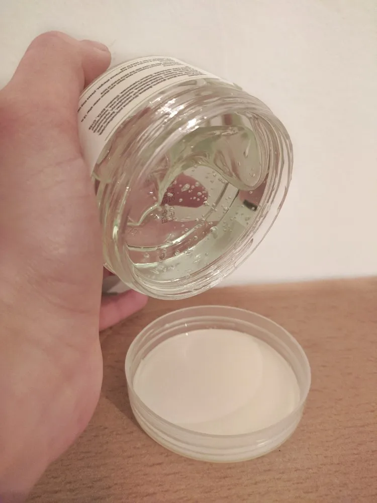 доставка быстрая,курьером. баночка хорошо упакована в пленку. гель прозрачный,легкой консистенции. наношу тонким слоем как крем. на коже хорошо впитывается,увлажняет,но остается немного липкий след. при желании потом можно смыть.