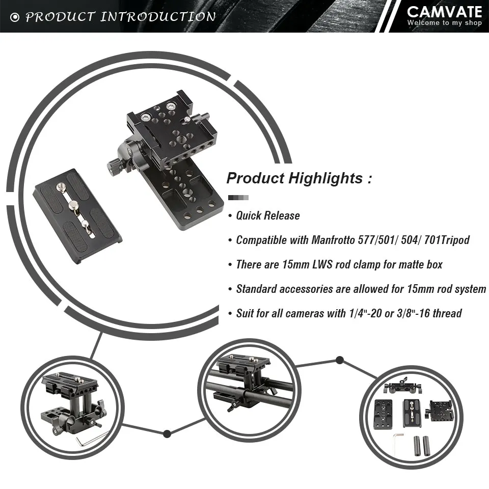 Монтажная пластина CAMVATE для камерыQR-основание со стандартным 15-мм LWS двойным стержневым зажимом для штатива Manfrotto 577501 504 701
