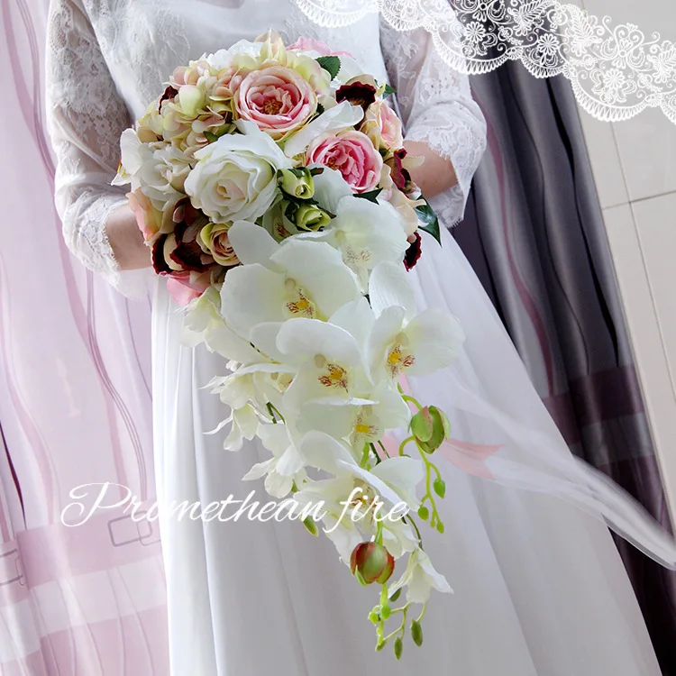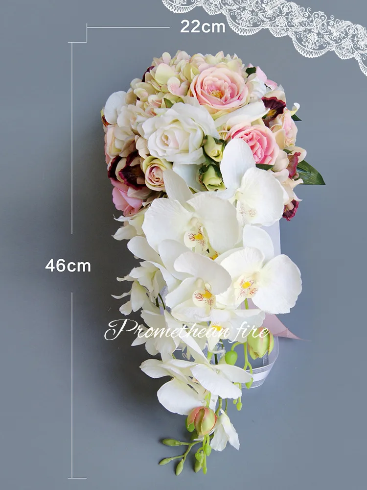 JaneVini Королевский синий искусственный букет невесты водопад Свадебный букет с хрустальным шелковым цветком Свадебный букет из искусственных роз