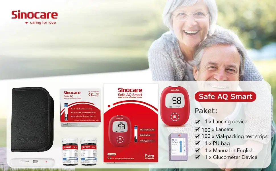 Примечание:1, есть 2 устройства опционально-mmol/L & mg/dL, пожалуйста, выберите его в соответствии со стандартом в вашей стране.2, батареи не включены в пакет из-за авиационных ограничений.3, пожалуйста, закончите тест-полоски в бутылках в течение 3 месяцев, как только вы открываете его. Технические характеристики изделия:Образец крови: свежая периферическая цельная кровь, венозная цельная кровьДиапазон испытаний: 20-600 мг/длВремя теста: 5sОбъем крови: 0.6ulHCT: 30-60%Срок годности: 24 месяцаПамять: 10 результатов тестирования, если требуется кодирование или нет: нетБатарея: 2 * AAA батареи (без батарей в упаковке)Посылка включает в себя:Прокалывающее устройство-1 шт.1 x безопасное смарт-глюкометр AQ (батарея не входит в комплект) 1 x сумка из искусственной кожи100 х тест-полоски для упаковки флаконов100 x ланцеты1 x руководство на английском языке