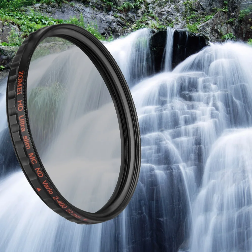 Особенности: Нейтральную плотность можно отрегулировать от ND2 (1 f-stop) до ND400(8 + f-stops) , поворачивая переднее кольцо. Ультратонкая оправа, толщина всего 7 мм Высококачественное Оптическое стекло AGC Нанесите медленную скорость затвора под сильным солнечным светом. Большая диафрагма позволяет легко создавать глубину полей. Подходит для динамического экрана, водопадов, потоков, волн и т. д. Указатели на кромке фильтра для точной регулировки. Все используемые материалы отвечают требованиям Европейского союза/стандарта ROHS (ограничение вредных веществ).