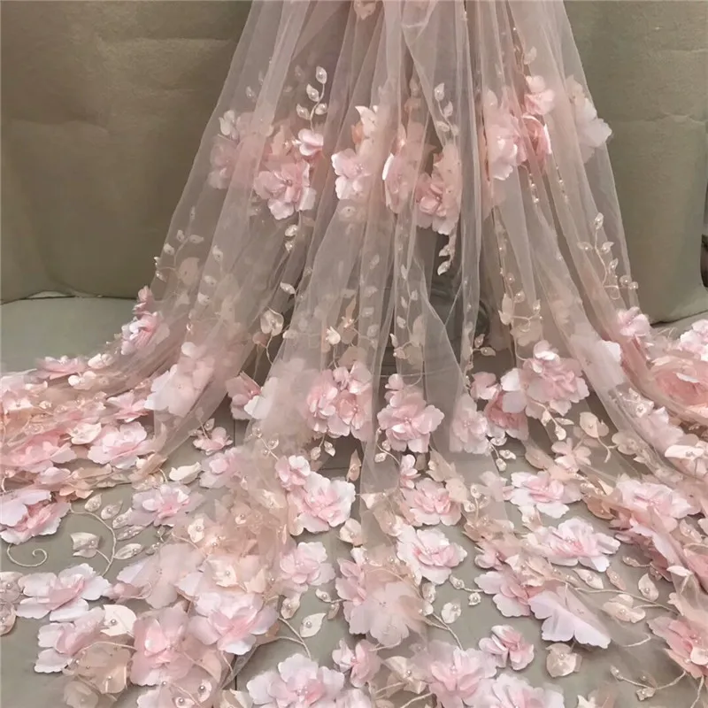 Кружевная ткань, белая, с 3D бисером, 2021, сетка высокого качества, вышивка, аппликация, 3D цветок, тюль, кружевная ткань в нигерийском стиле для невесты, XC300a