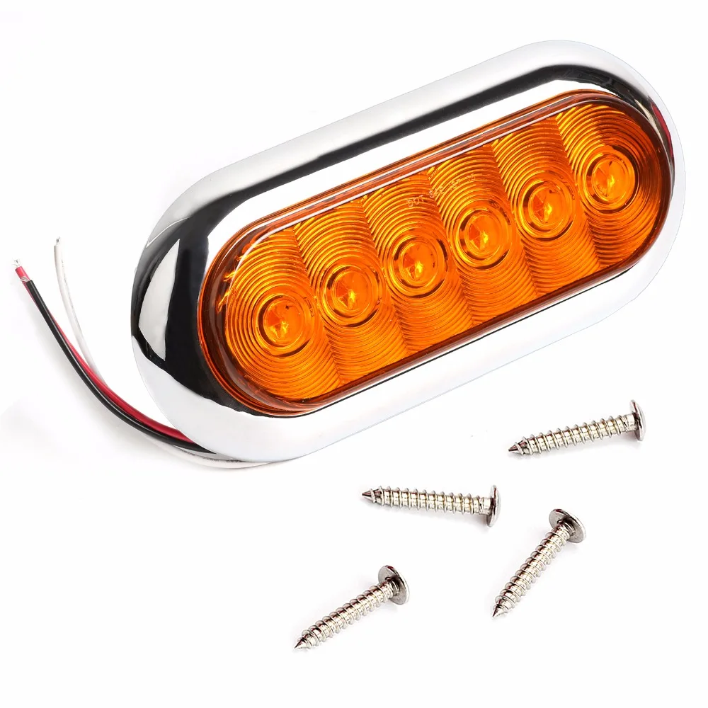 Овальные стоп-сигналы поворота Keyecu, 4 шт., 6 светодисветодиодный, стоп-сигнал, задний фонарь с хромированной оправой, 12 В, для грузовика, прицепа