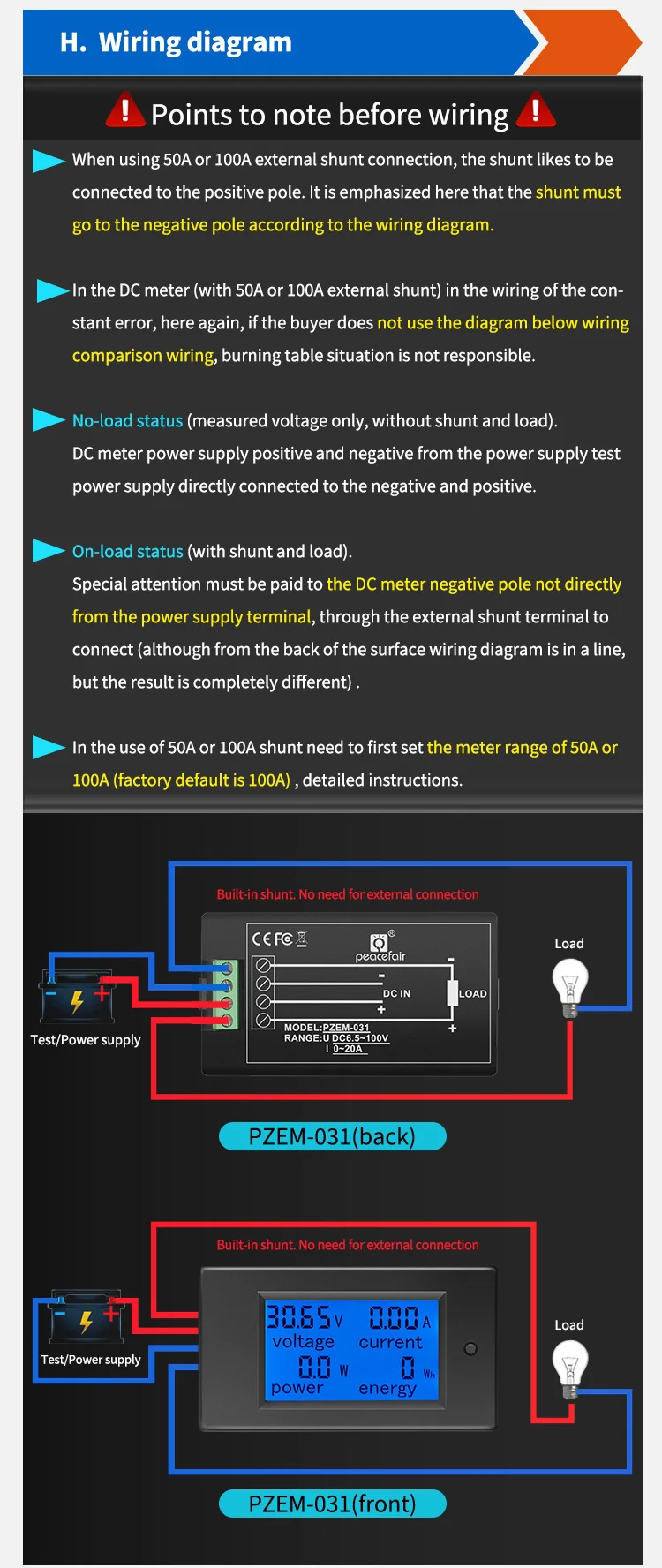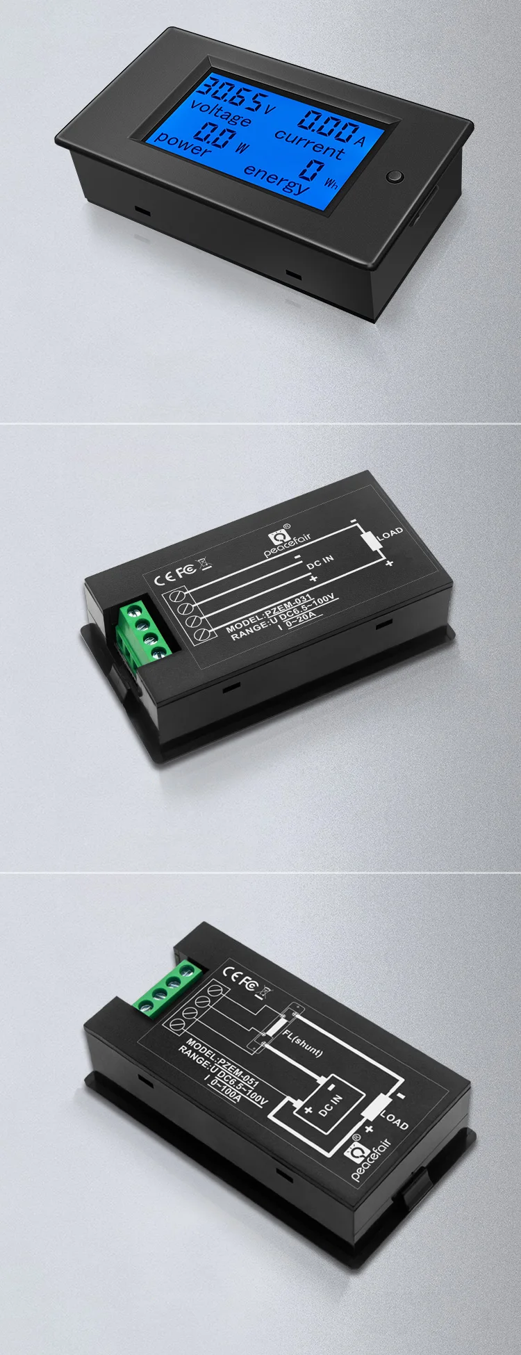 PEACEFAIR DC Цифровой Панель Вольтметр Амперметр переменного тока 6,5-100V 4 IN1 ЖК-дисплей Мощность энергии тока Амперметр PZEM-051 с 100A шунт