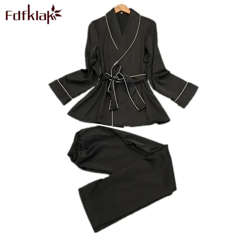 Пижама Fdfklak Женская шелковая, пижама для сна, пижама черного и темно-синего цвета, домашняя одежда, Q1269, весна-лето