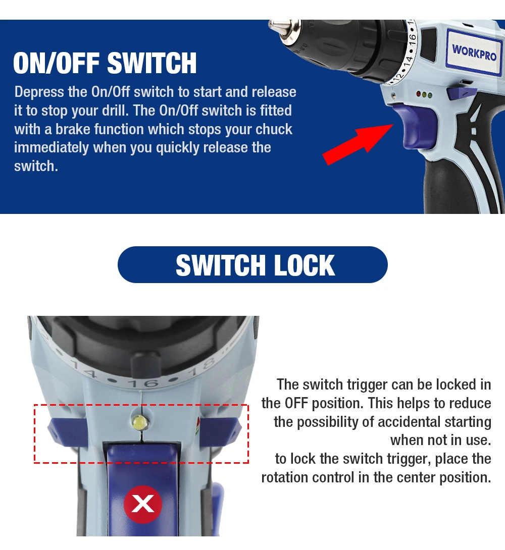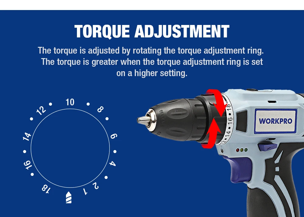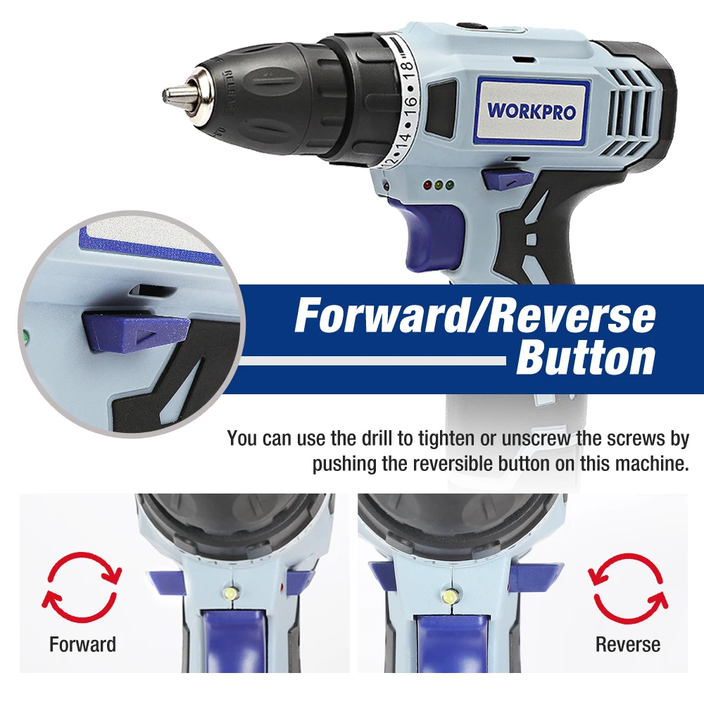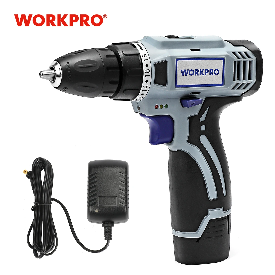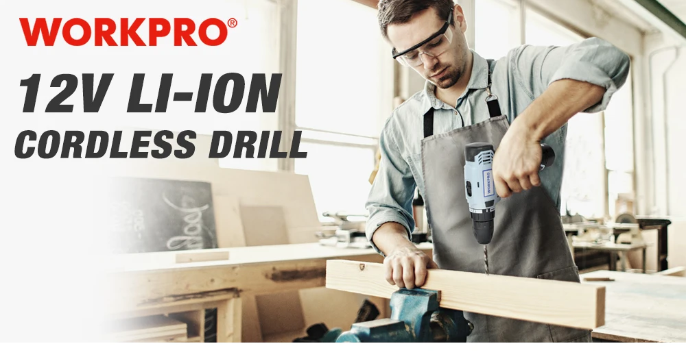 Дрель-шуруповерт WORKPRO аккумуляторная, 12 В, 38 дюйма, 2 скорости