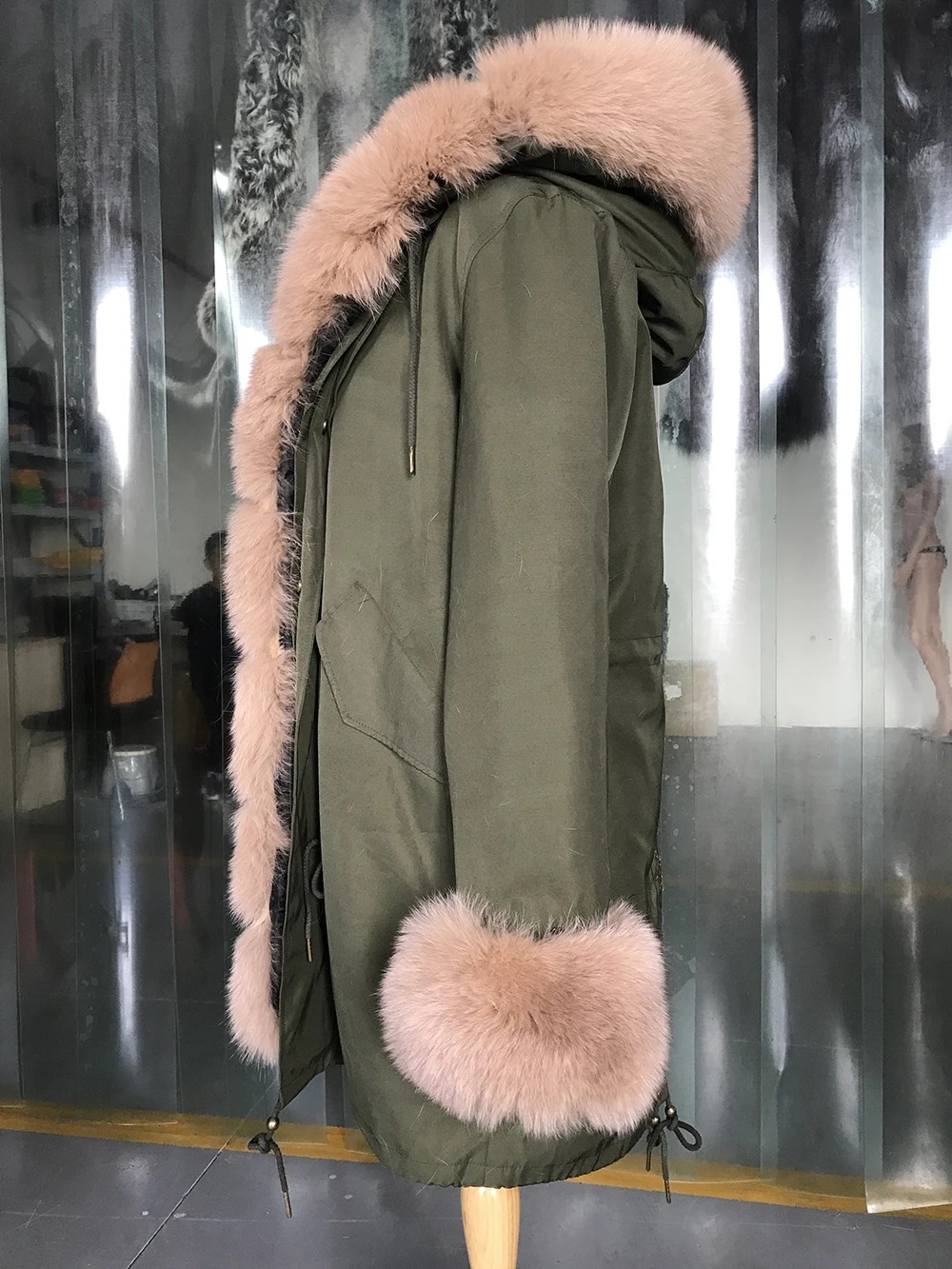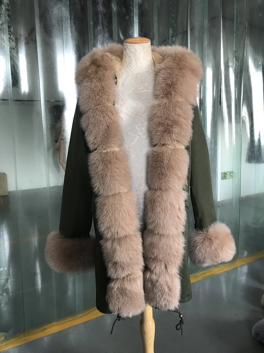 Модная Стильная парка FURSARCAR из натурального меха, женское роскошное зимнее пальто средней длины с воротником из лисьего меха и манжетами, Толстая теплая парка из лисьего меха