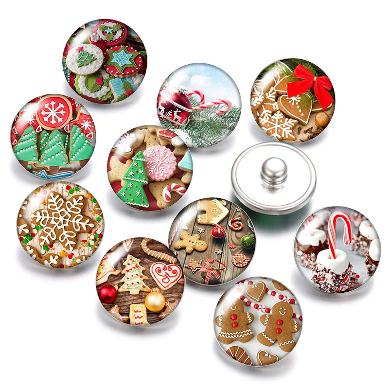 Рождественские бисквитные и конфеты DB0584, 18 мм, кнопки, 10 шт., Смешанные Круглые Стеклянные Кабошоны для фотографий, стильные ювелирные изделия для кнопок