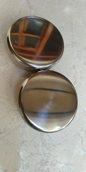 Описание товара является точным, и качество хорошее. Чаша 40 мм Глубокая и 48 мм Общая высота с крышкой. Есть светлые поверхности потертостей, которые должны легко полировать. На базе есть надпись.