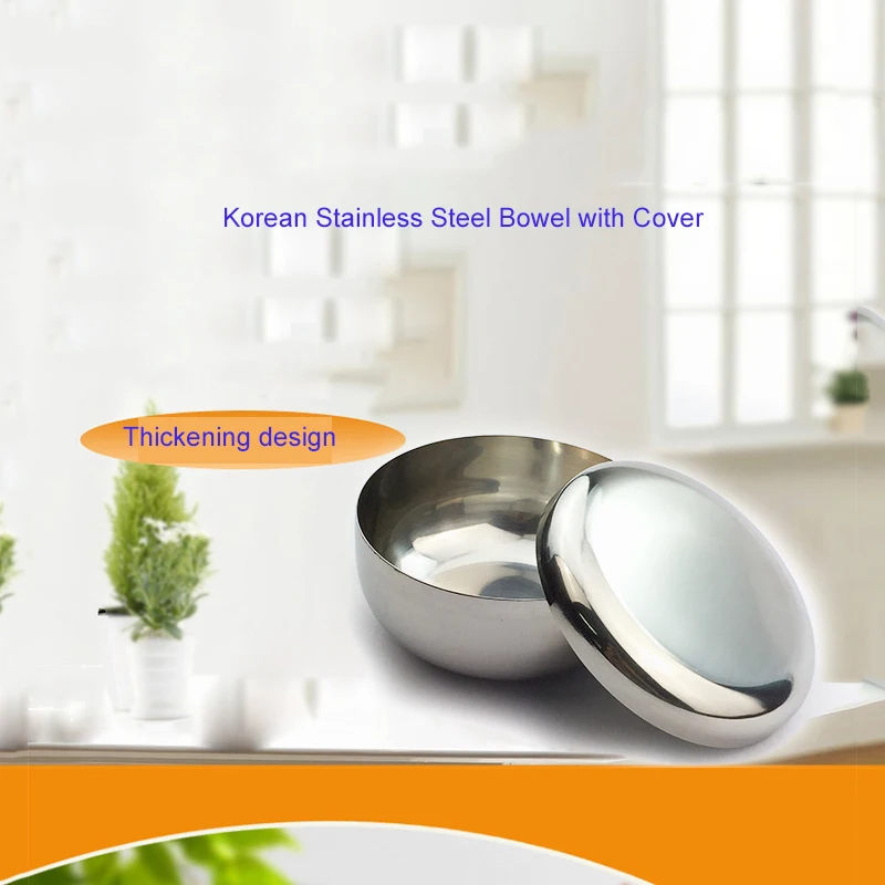 Миска Kimchee из нержавеющей стали, Корейская большая миска для приготовления риса с крышкой, 10 см, 12 см, утолщенная детская миска, кухонная посуда