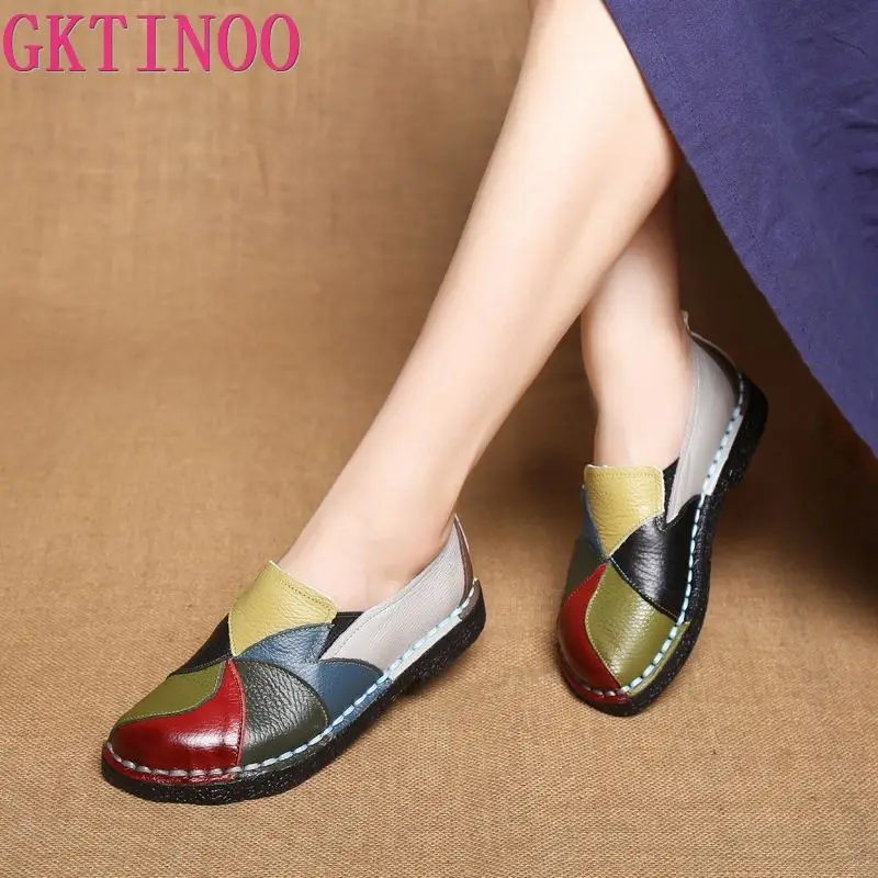 GKTINOOМодная обувь; Женские лоферы из натуральной кожи; Женская повседневная обувь смешанных цветов; Мягкая удобная обувь ручной работы; Женская обувь на плоской подошве