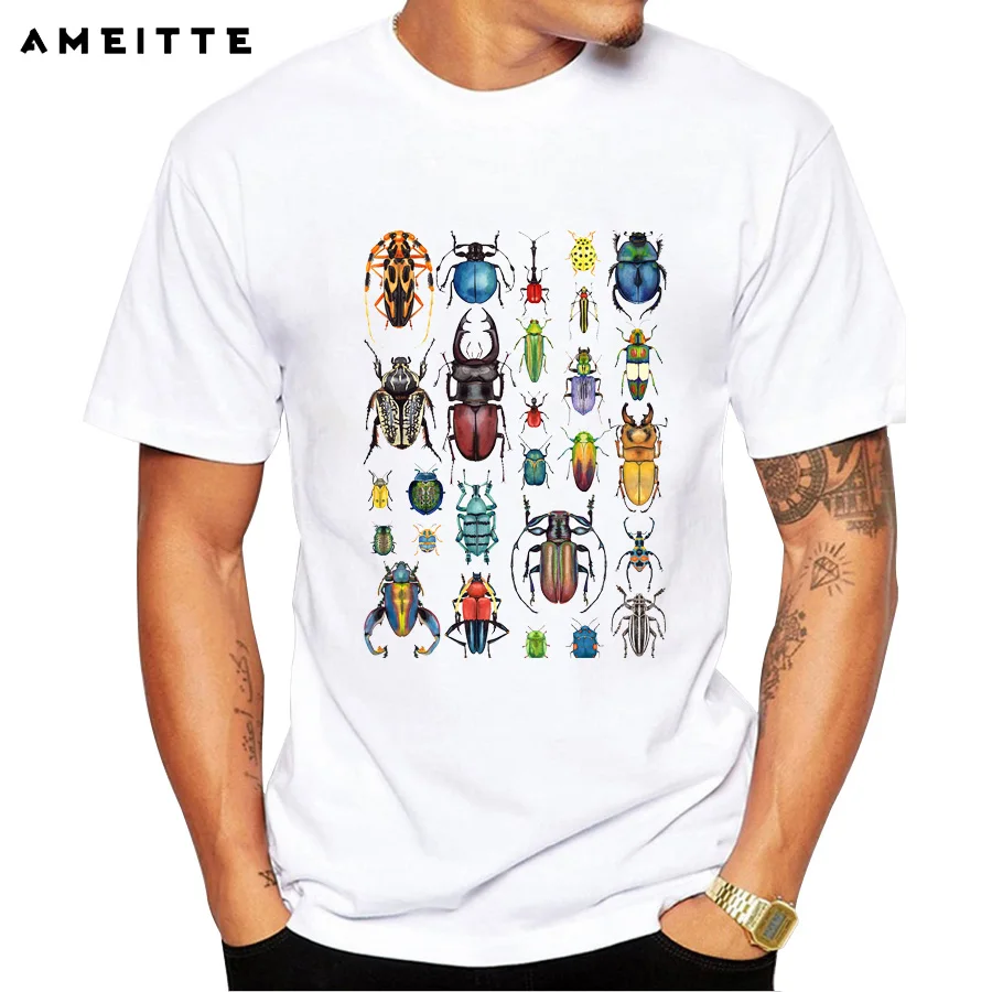 Новейший дизайн футболки с насекомым Летняя мужская индивидуальная белая футболка с принтом топы в стиле Geek футболка одежда