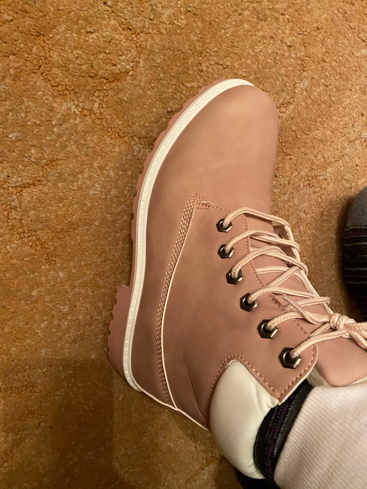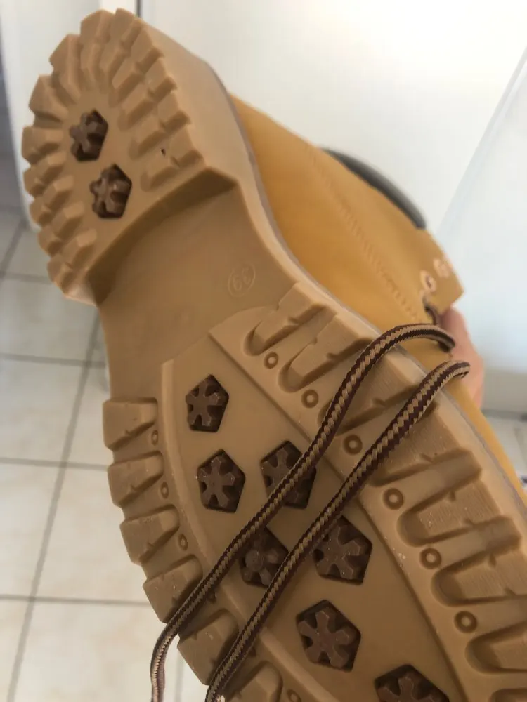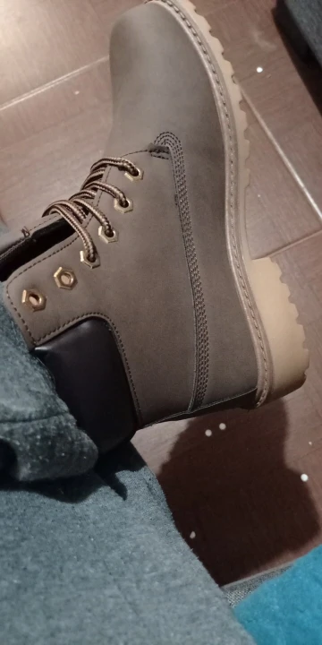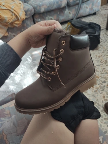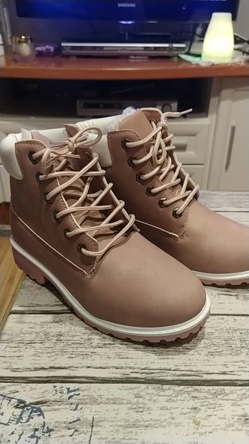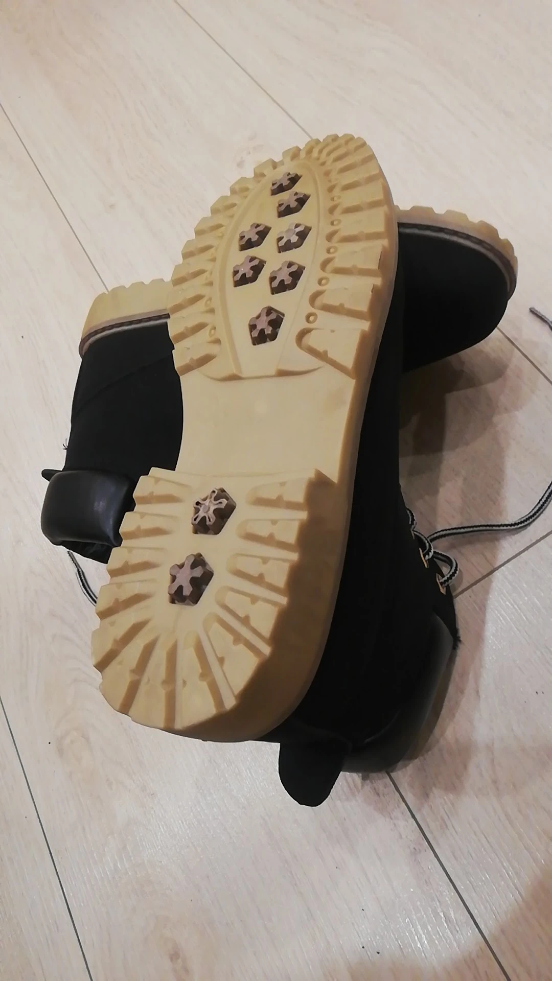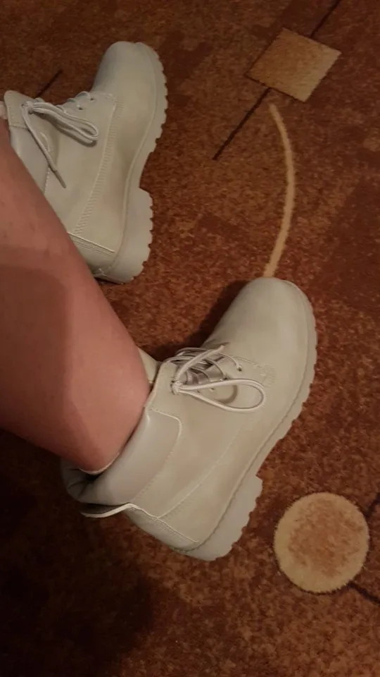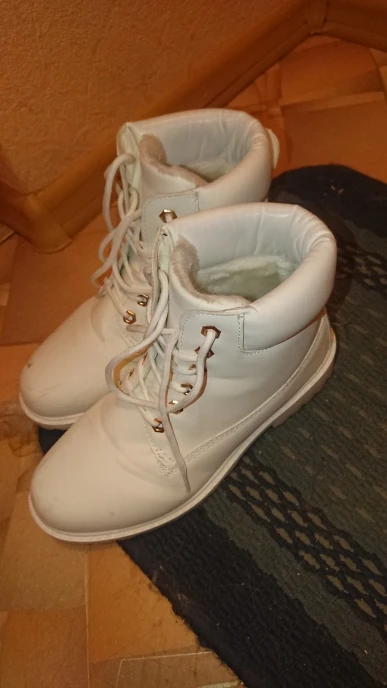 Ботинки пока что больше похожи на резиновые. Выглядят дёшево. Нога дышать точно не будет. Стелька тонкая. Брала их для прогулок с собакой и езды на дачу - для этих целей вполне подойдут. Обычно ношу 36-ближе к 37. Взяла 38 потому что знаю, что нужна стелька 24 см. Сидят комфортно с носком. Вызывает сомнение белый край рядом с шнурками (на фото). Брюсь, что быстро истрепится и почернеет