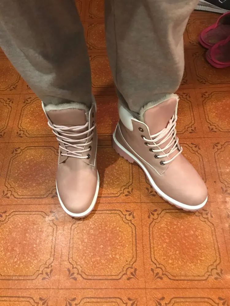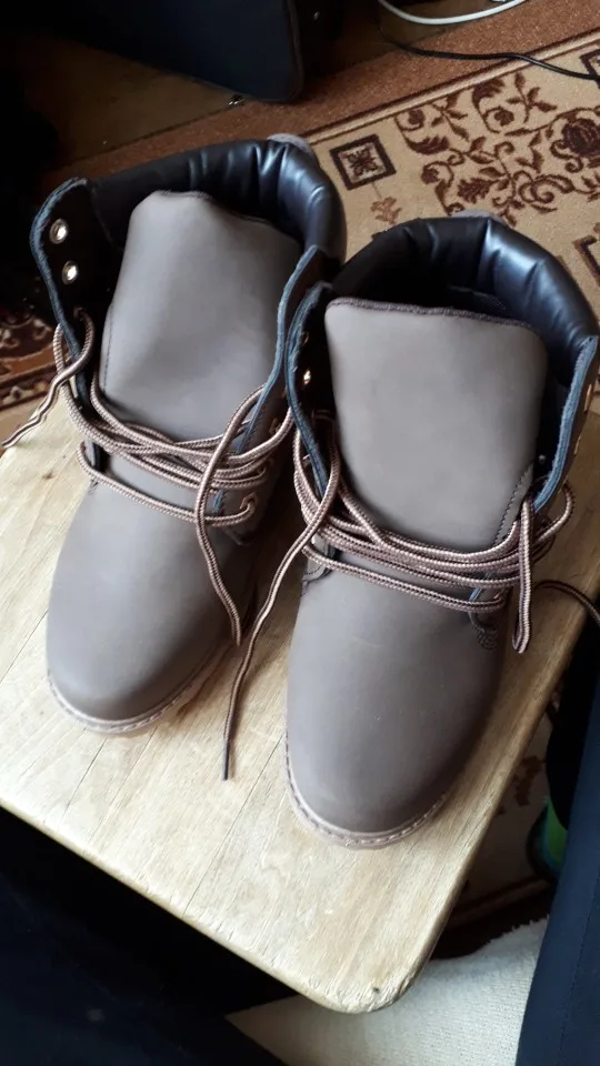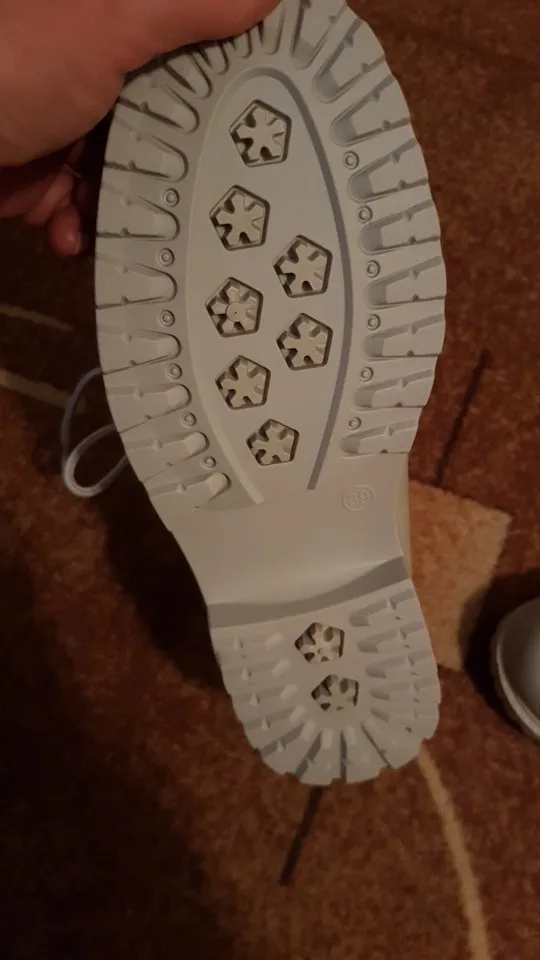 В целом нормальные ботинки. Купила за 1200, ну и выглядят они на 1000 (((. Быстро пачкается поверхность и затруднительно убрать грязь. Выглядят на ноге довольно массивно и громоздко. Размер 38 с мехом хорошо сел на 37 размер. Сами конечно теплые.