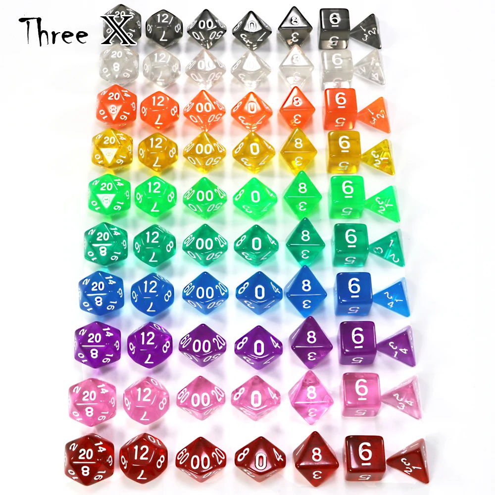 Цветной яркий прозрачный набор из 7 предметов с конфетным эффектом игральные кости для покера, синий цвет DnD D4,d6,d8,d10,d12,d20 для ролевых игр настольная игра