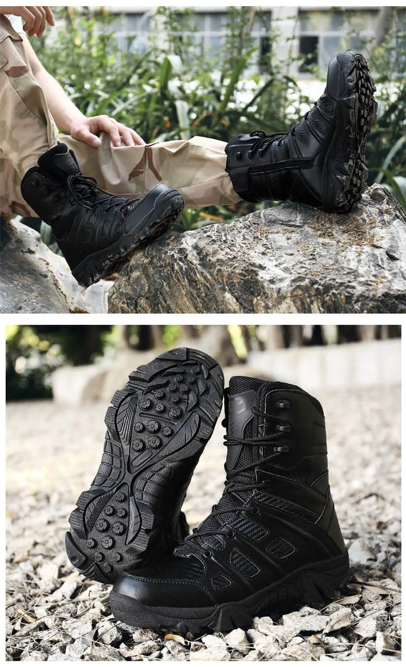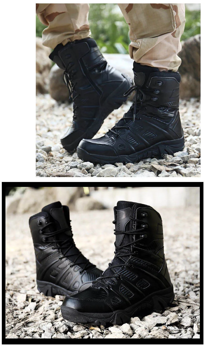Мужские тактические военные ботинки, зимние кожаные водонепроницаемые ботинки в стиле пустыни, армейские рабочие ботинки, мужские ботильоны, размера плюс