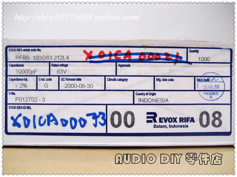 Высокоточный пленочный конденсатор RIFA PFR 2019 мкФ63 в горячая Распродажа MKP, 0,01, 2%, 10 нФ, 103, в оригинальной коробке, 10 шт.30 шт.