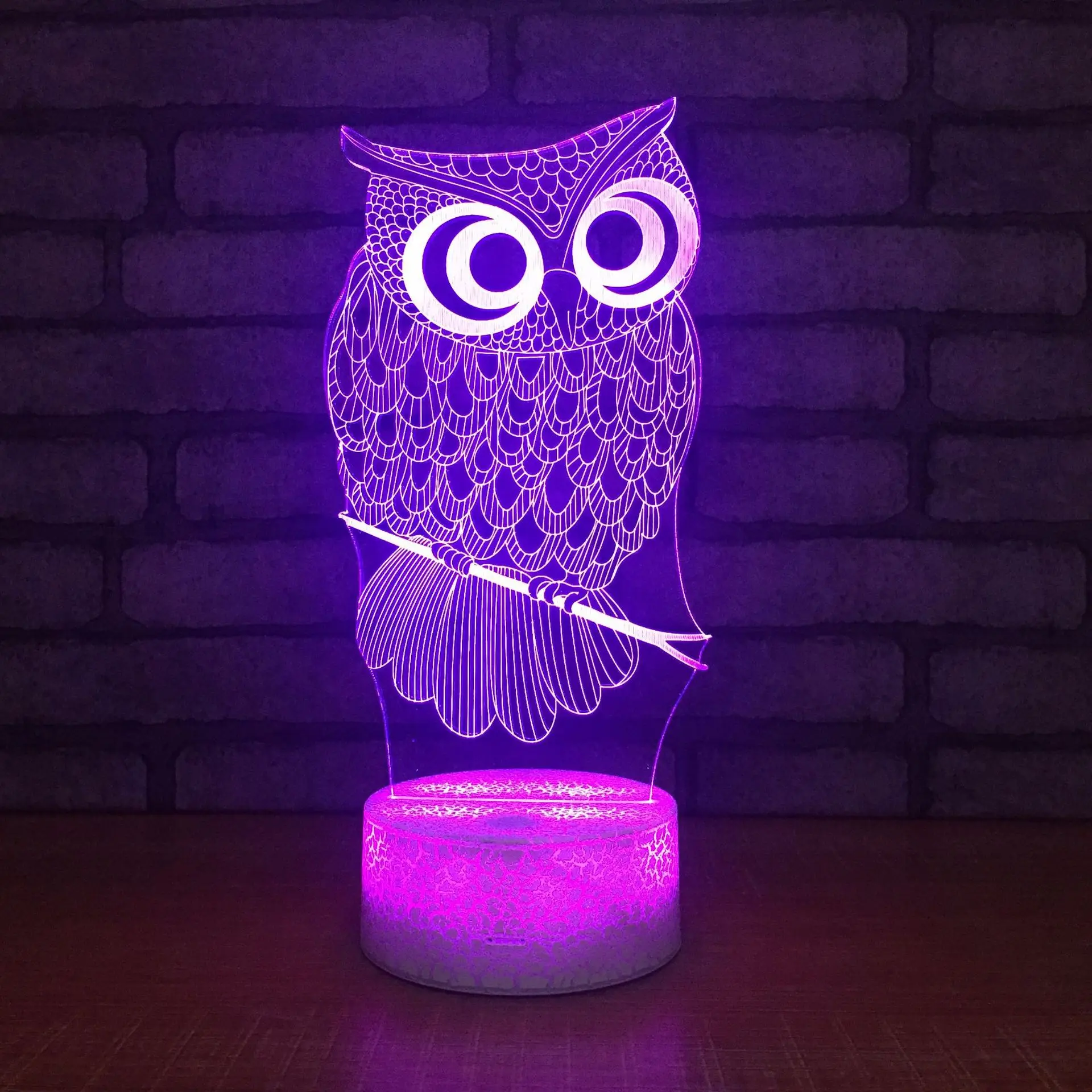 Акриловая 3d-лампа в виде совы для спальни, настольная лампа для спальни с белым основанием, прекрасная 3d-лампа с изменением 7 цветов