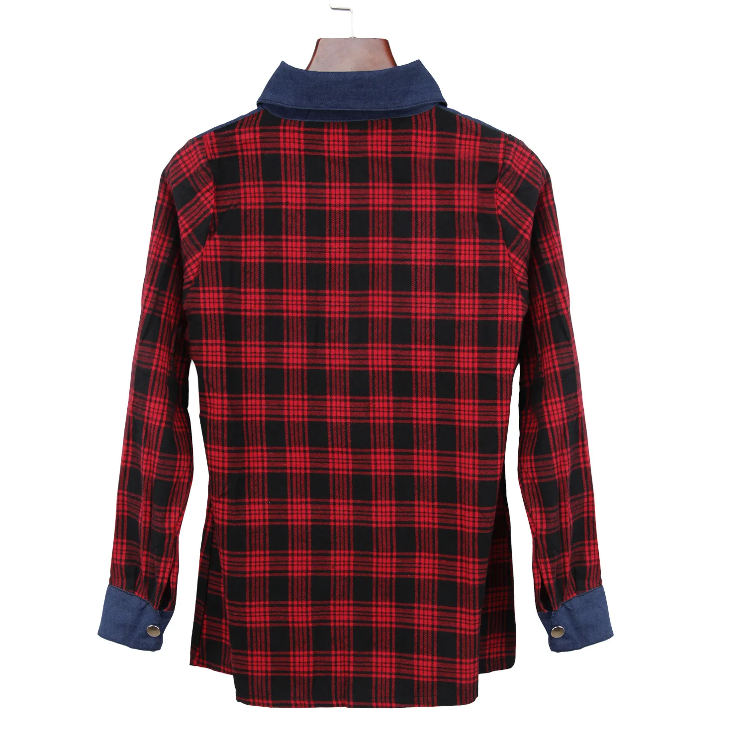 Отворот в ковбойском стиле комбинированное платье в клетку и полоску; Один Пряжка 2018 новые весенние женские хлопковая винтажная рубашка Формальные женской одежды размера плюс