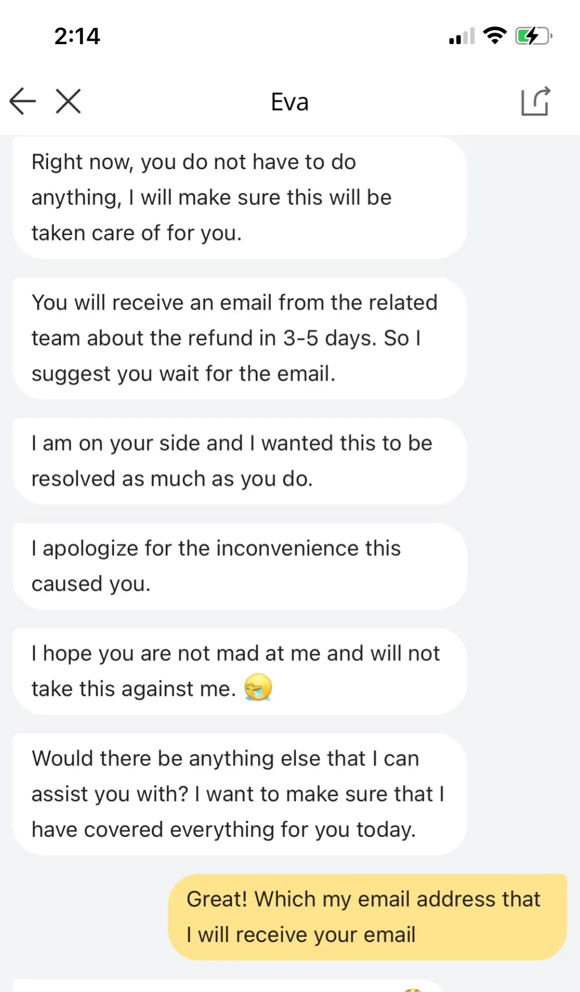Я доволен равным товаром, однако связь с продавцом странная, Я сделал заказ, но у меня были сомнения в системе окон (у нас есть 2 рельса, которые пересекаются, когда я заказал один занавес для всего окна), Поэтому через пару часов я отменил заказ и уведомил продавца, что хочу проверить окна, поэтому, пожалуйста, отмените заказ, и это было игнорировано. Я подчеркиваю, что отменил заказ в течение действительно нескольких часов, и Продавец ответил на вопросы о размерах раньше, без проблем, но игнорировал отмену.