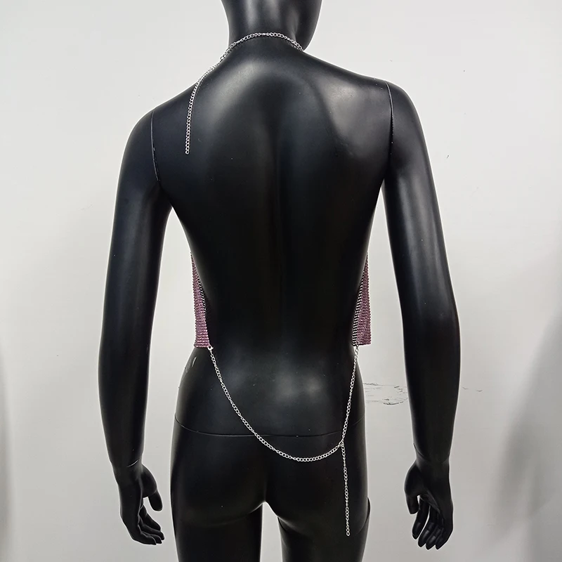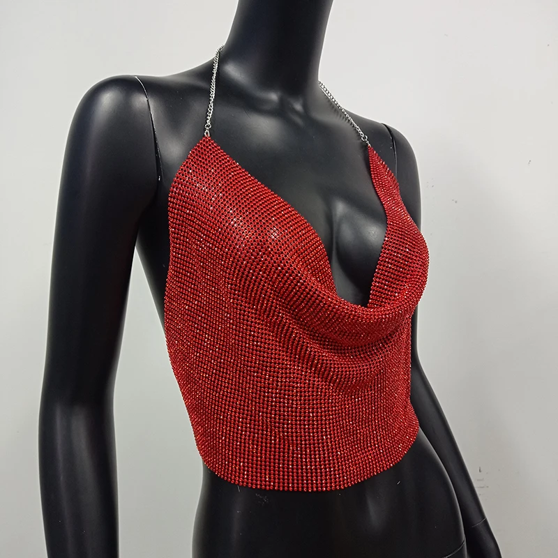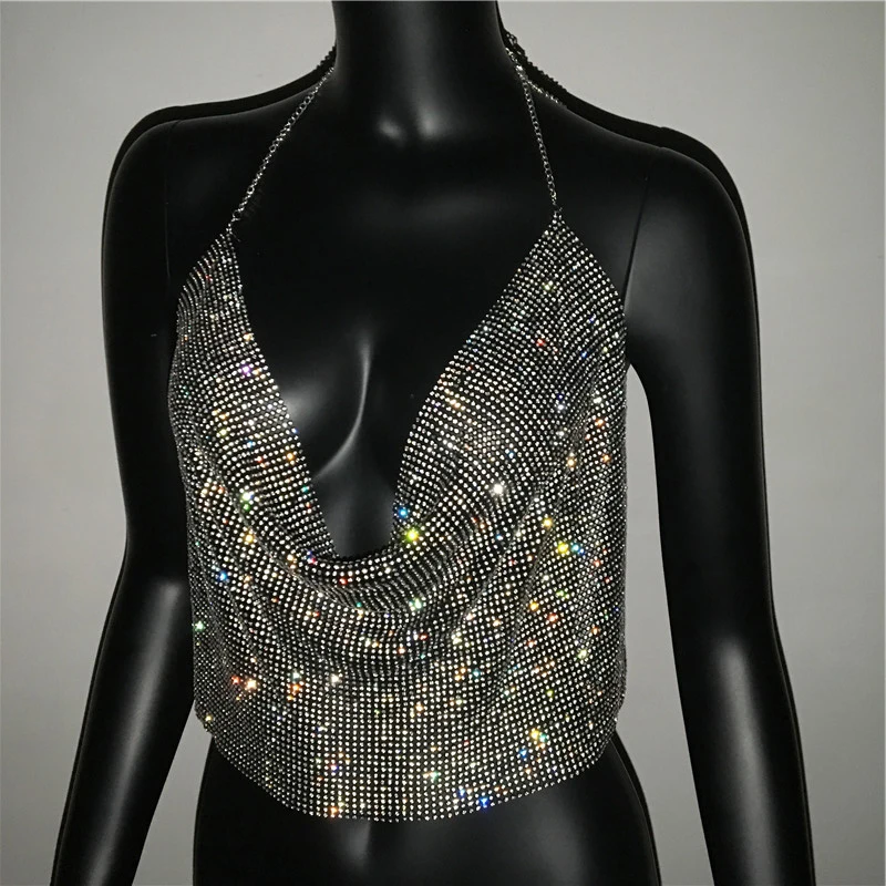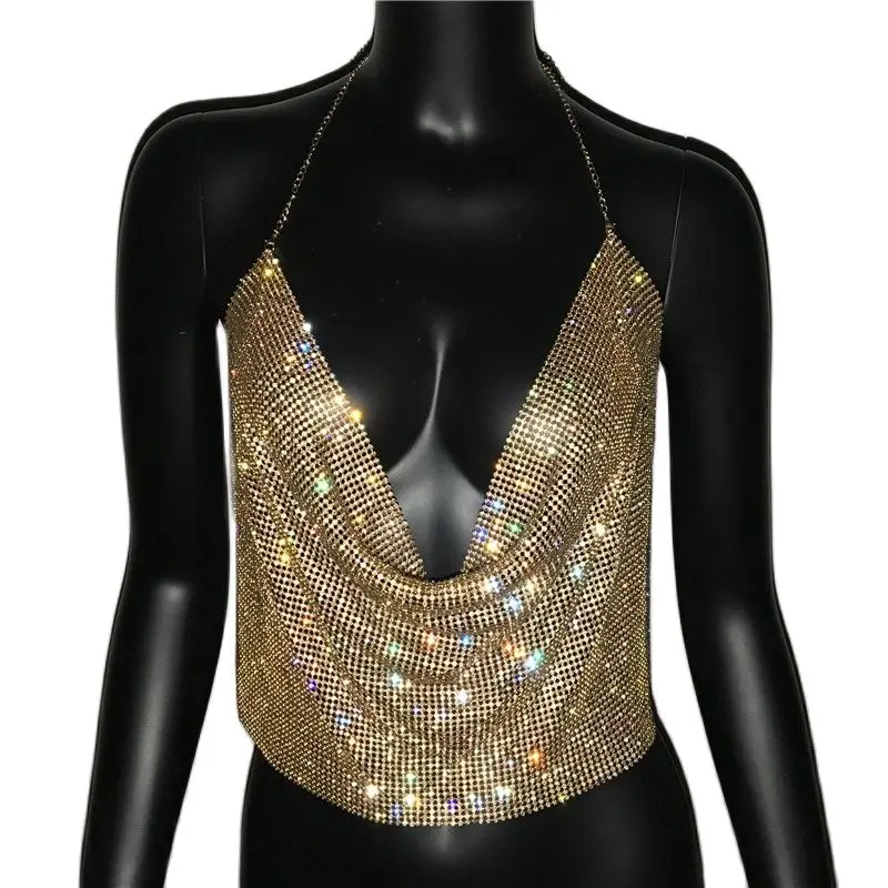 Женский Блестящий укороченный топ с открытой спиной, металлическая майка с V-образным вырезом и бриллиантами, лето 2022