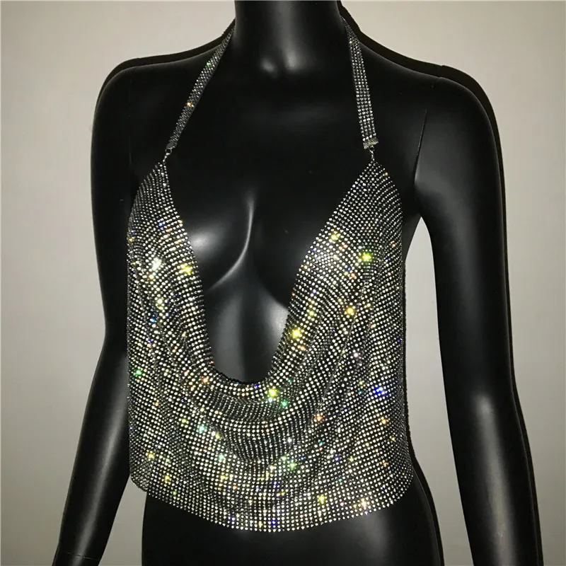 Женский укороченный топ с глубоким V-образным вырезом и блестками