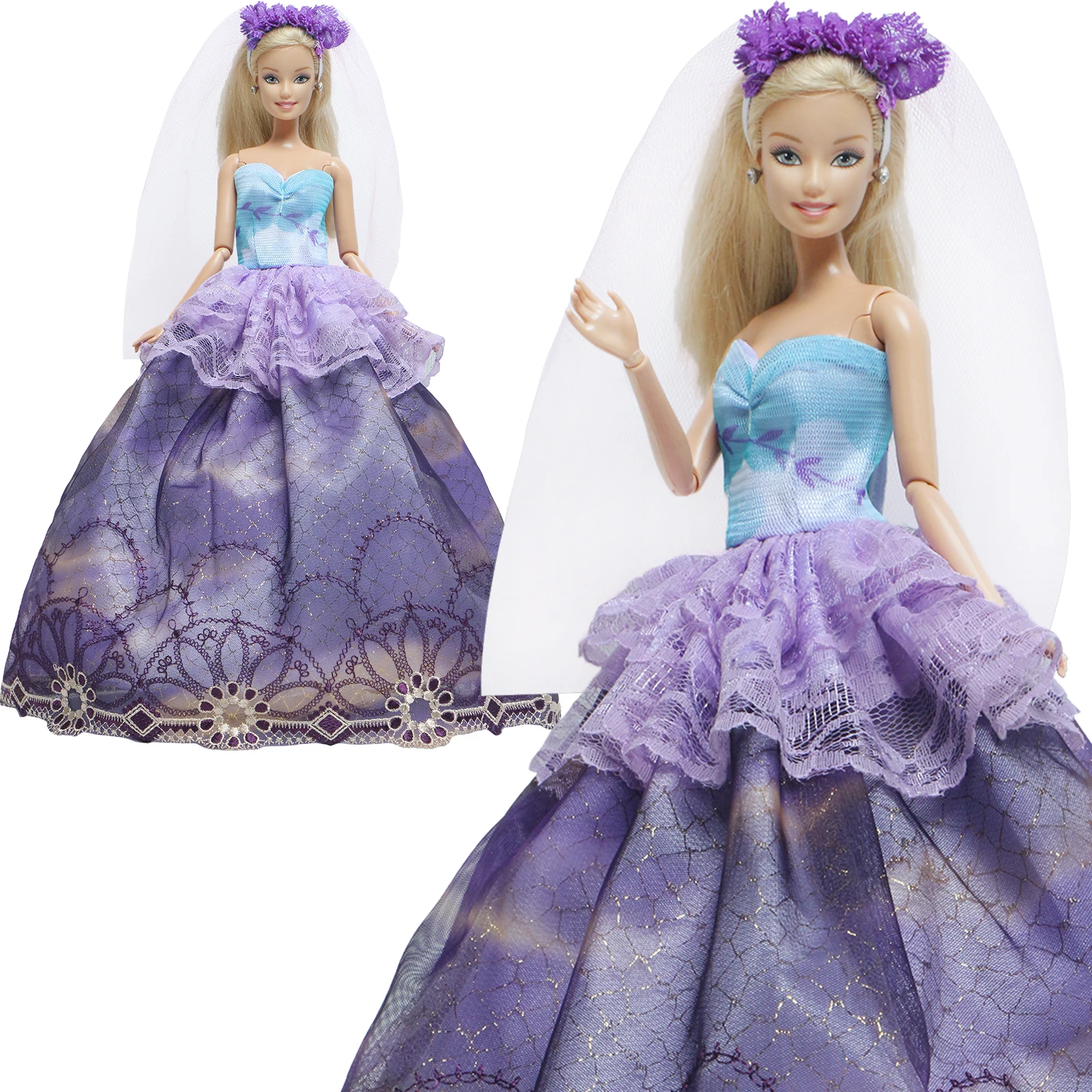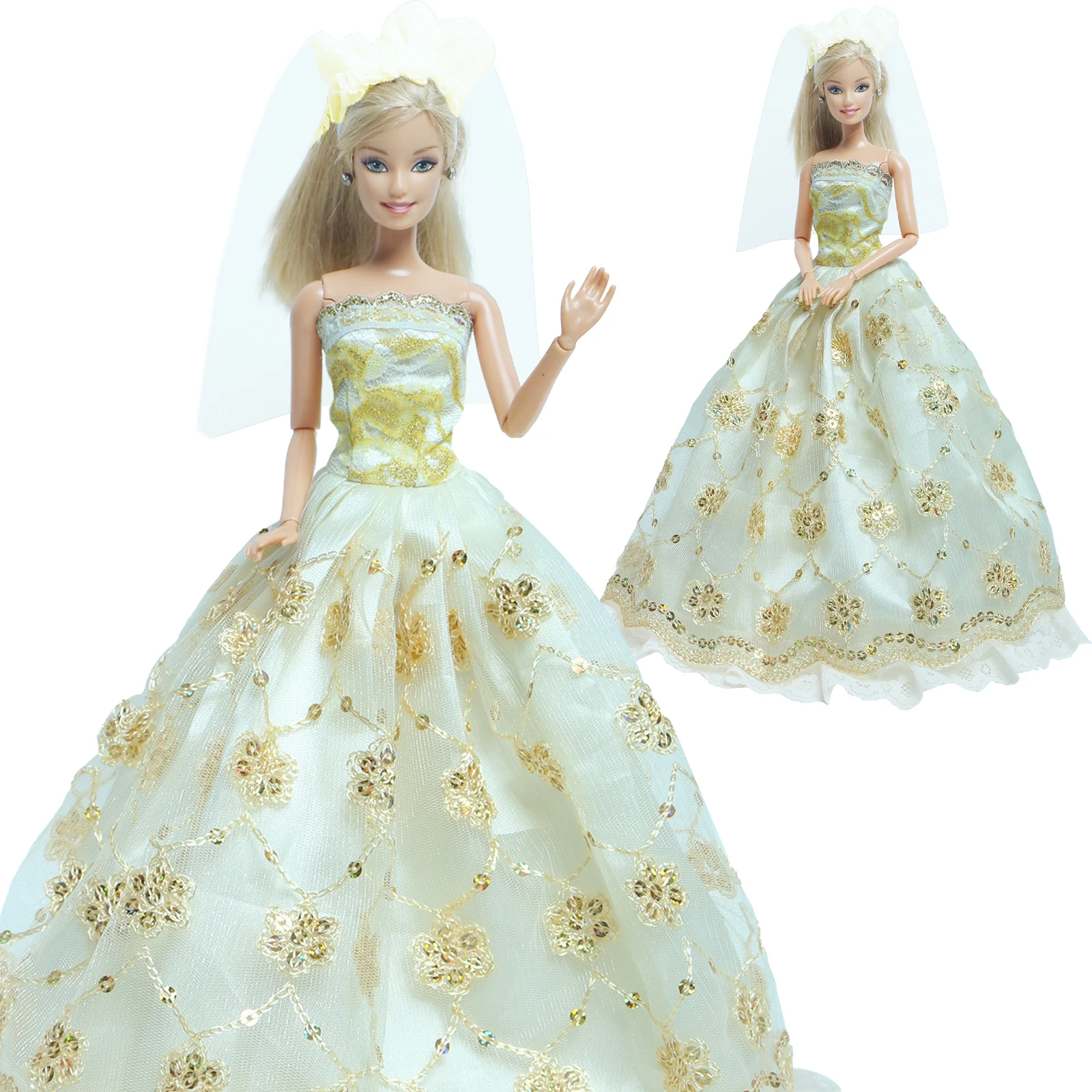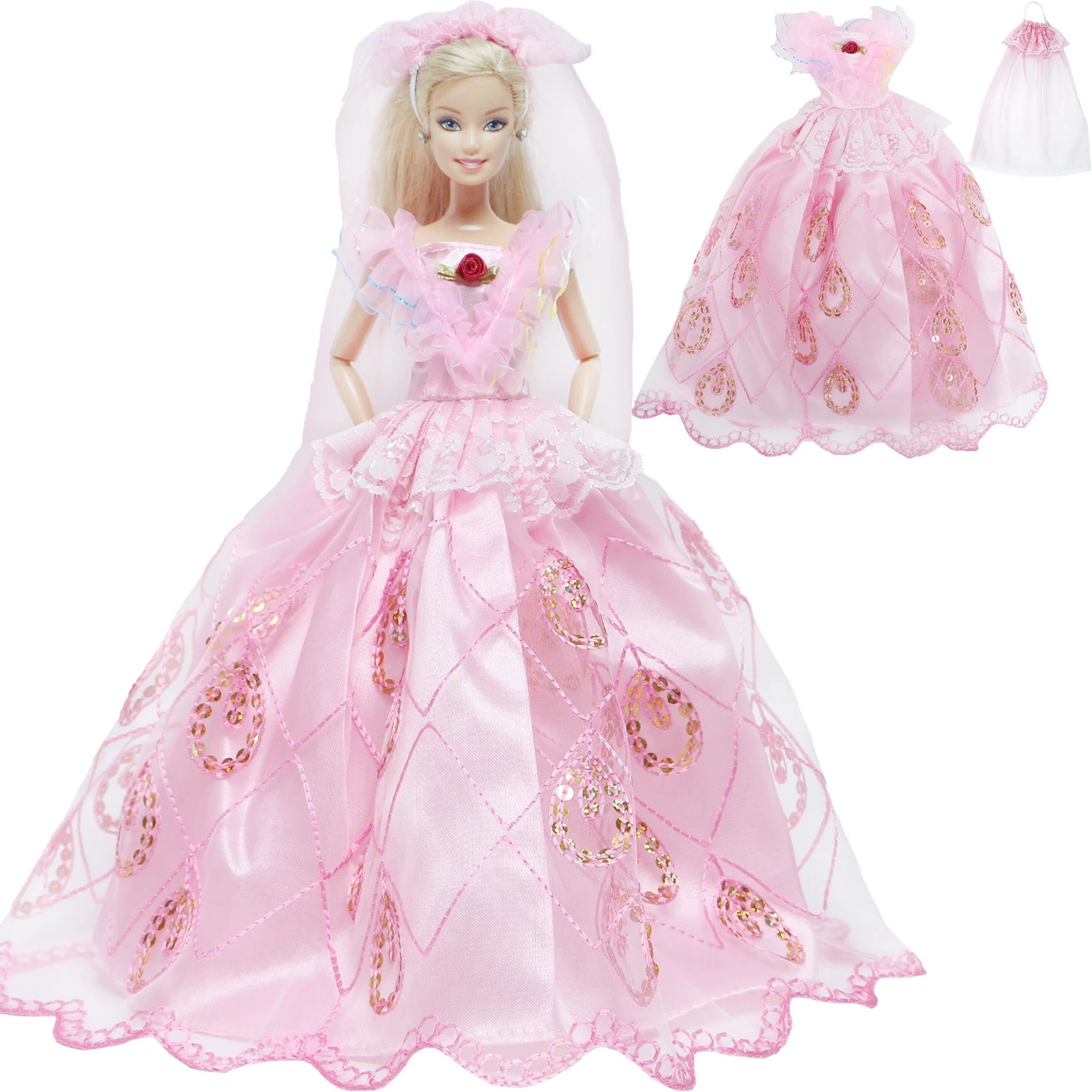 Свадебное платье для куклы ручной работы, вечервечерние бальное платье принцессы, юбка, фата, Одежда для куклы Барби, аксессуары для рукоделия, игрушка