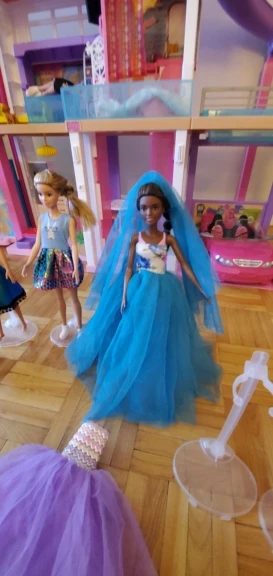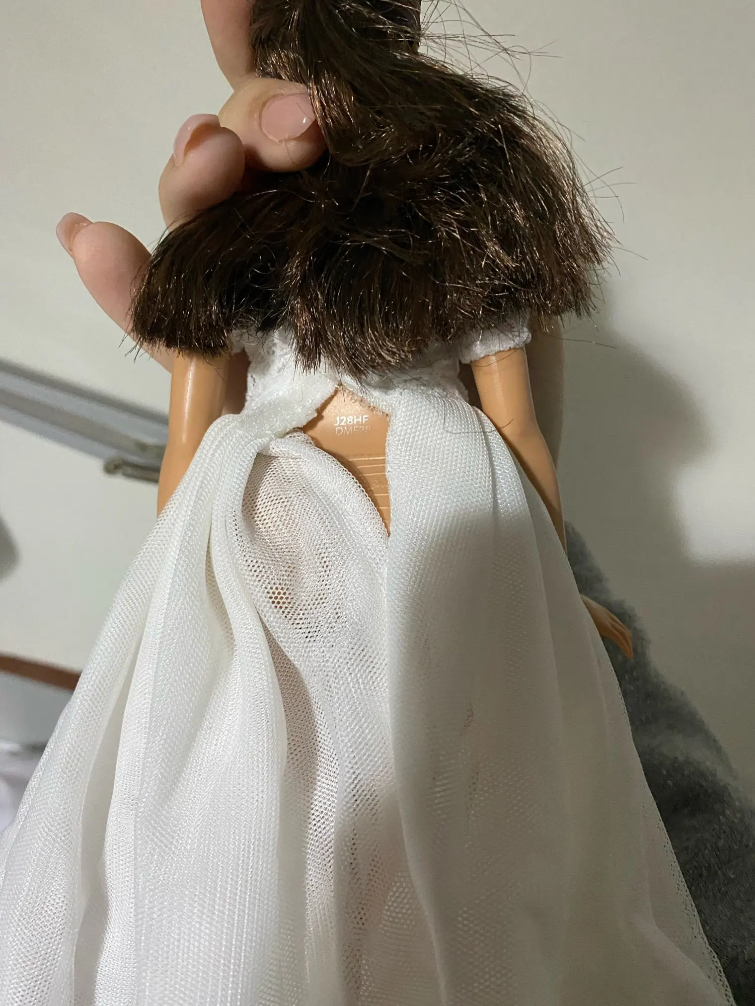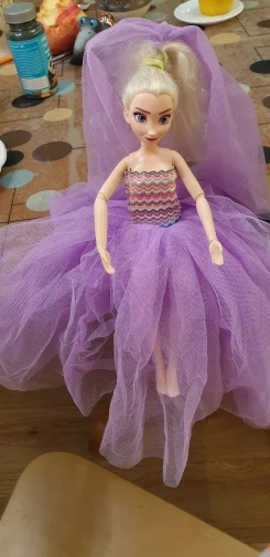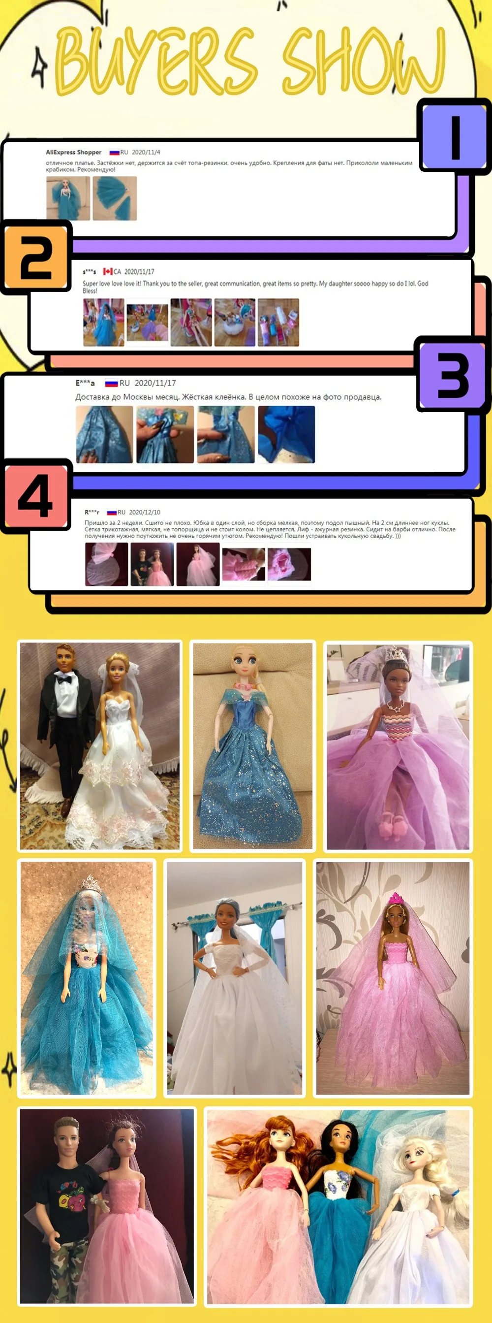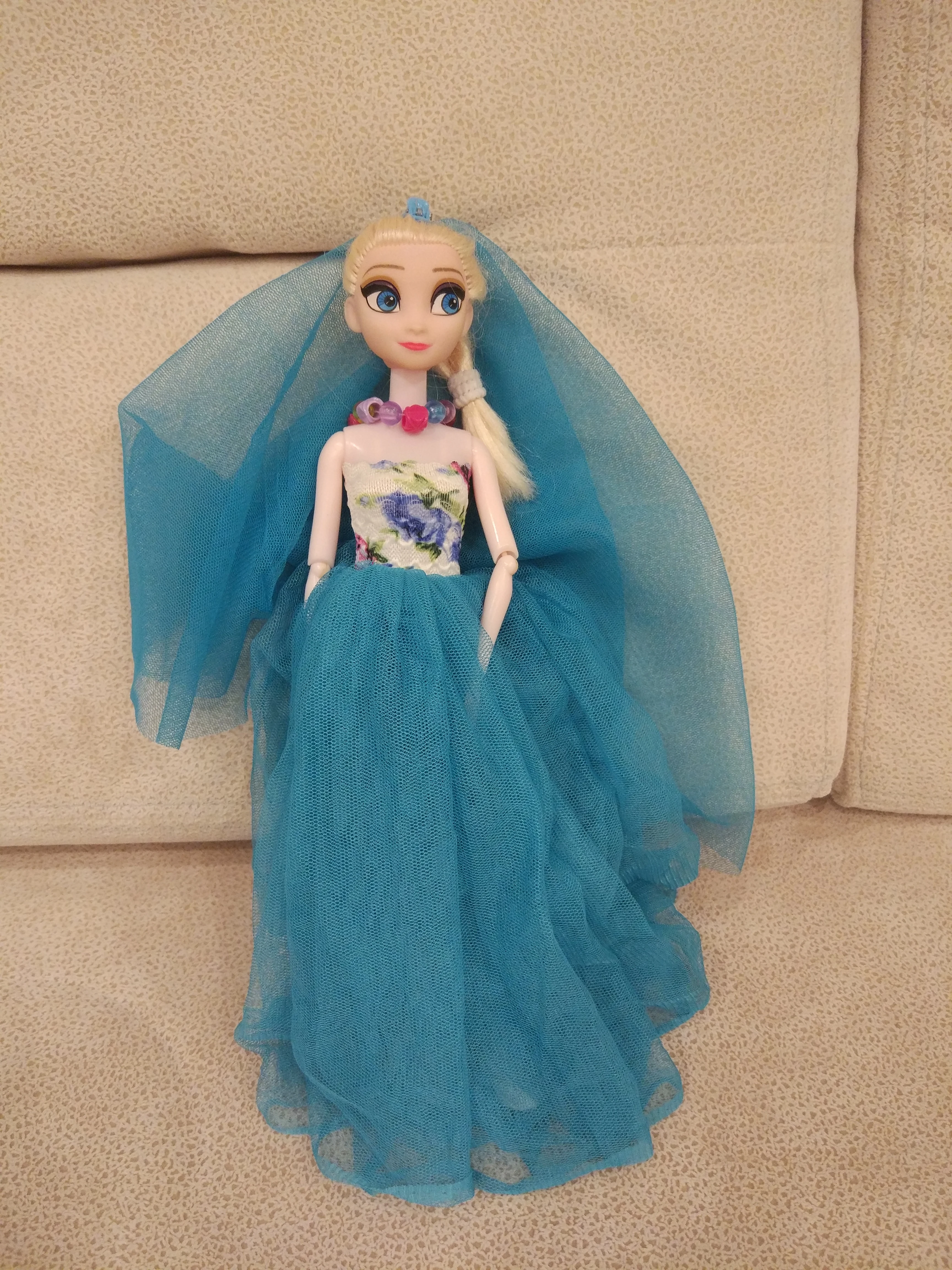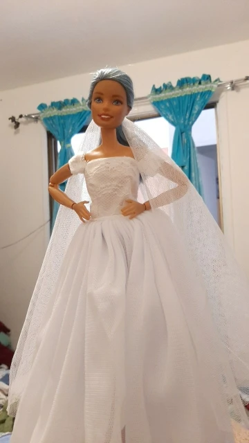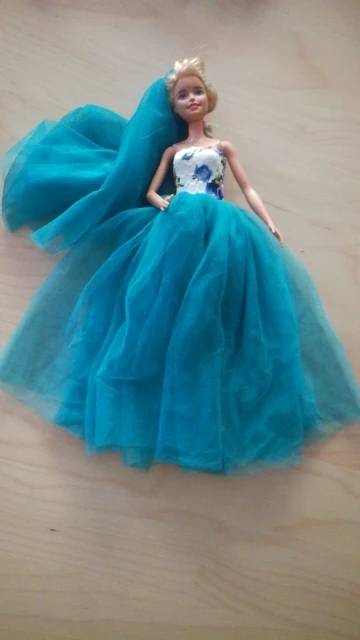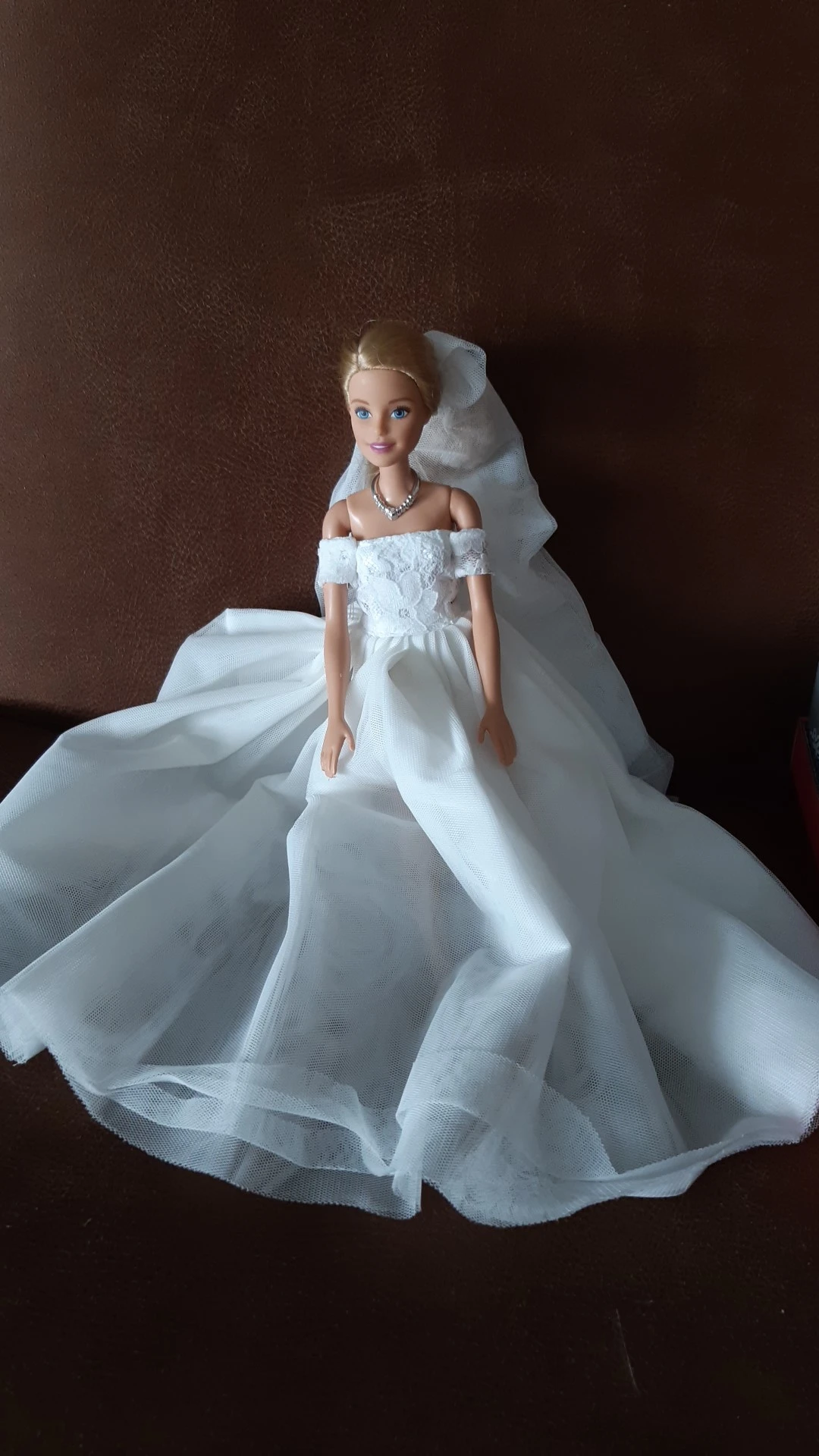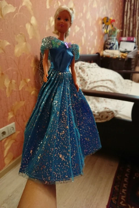 Пришло за 2 недели. Сшито не плохо. Юбка в один слой, но сборка мелкая, поэтому подол пышный. На 2 см длиннее ног куклы. Сетка трикотажная, мягкая, не топорщица и не стоит колом. Не цепляется. Лиф - ажурная резинка. Сидит на барби отлично. После получения нужно поутюжить не очень горячим утюгом. Рекомендую! Пошли устраивать кукольную свадьбу. )))