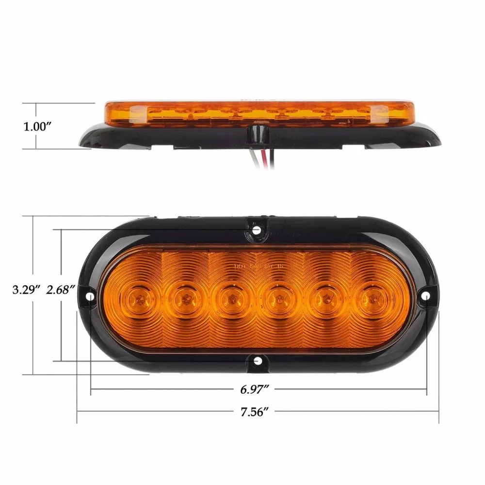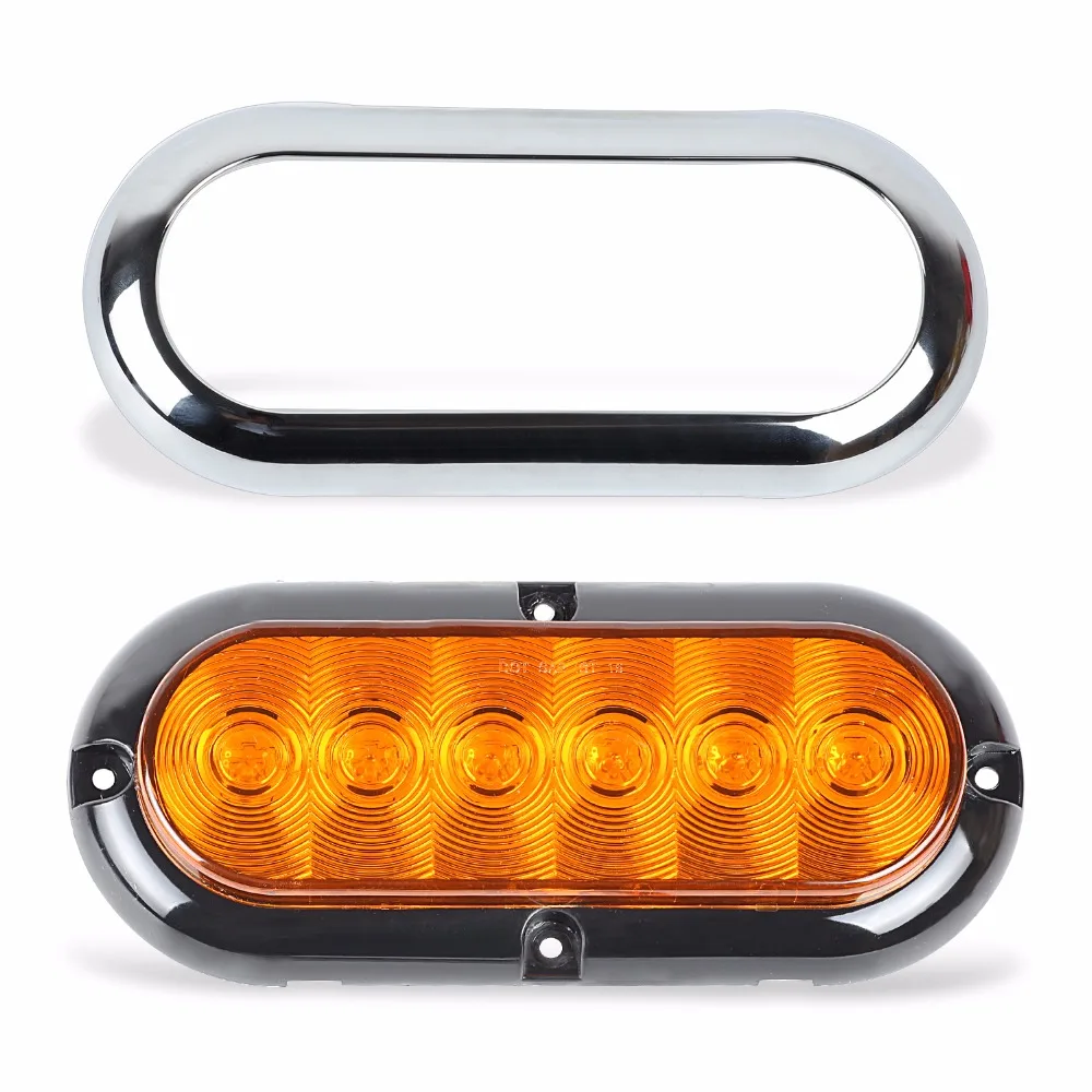 Желтый Овальный светодиодный стоп-сигнал Keyecu, 6 дюймов, задние парковочные огни для прицепа, грузовика, водонепроницаемый, 12 В, хромированный