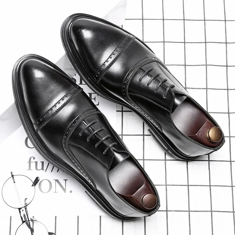 Мужские броги из натуральной кожи, Классические деловые туфли, на шнуровке, оксфорды, Формальные туфли