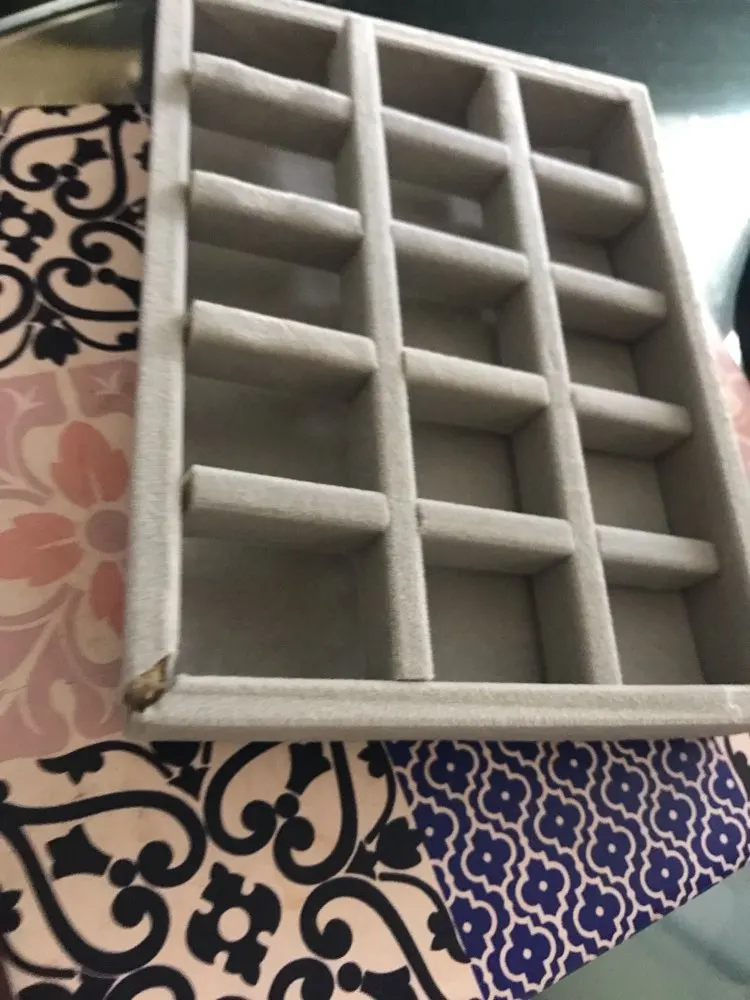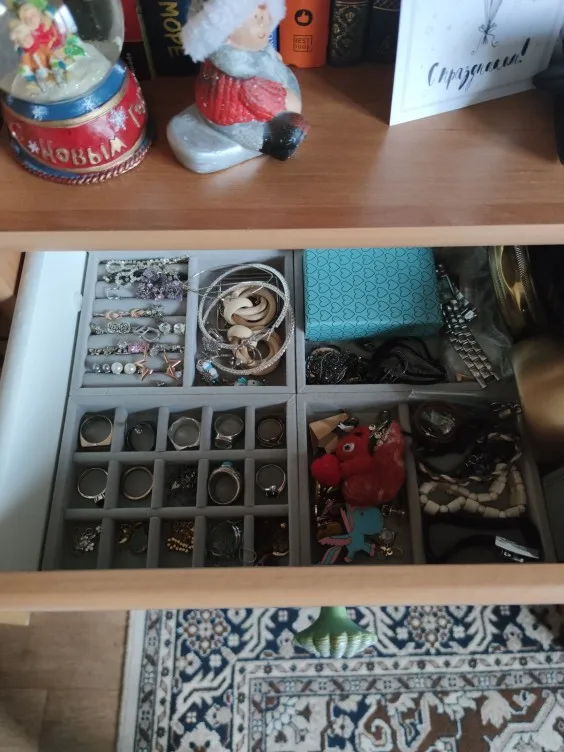 Органайзер прекрасный. Мягкий, хорошо сделанный. Помещаются не очень крупные серьги и кольца. Длинные в такие ячейку уже никак). Заказала ещё другого вида, чтобы все изделия разложить. Привезли быстро. В пятёрочку. Ещё и с купоном)