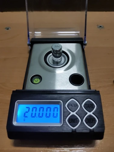 Шкала является точной. Немного пыли размером с песок, шкала читает 0,006 граммов. Калибровочный вес и Уровнемер встроены в основание. Съемная тарелка из нержавеющей стали удобна для переноса частей. В целом у этой единицы есть некоторый приличный вес. Он плотный, хорошо сделан. Не нужно общаться с продавцом. Дошел быстро.