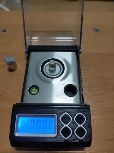 Товар пришел , все работает , проверил поверочную гирьку аналитическими весами показали 20,0006 грамма , достойно . Есть замечание по поводу устойчивости портативных весов - основание искривлено и шатается с погрешностью 0,5мм , прецизионная плита это подтвердила . Сейчас откалибрую и попробую . Придется под опорную подушку лепить изоленту чтоб компенсировать винтовой изгиб .