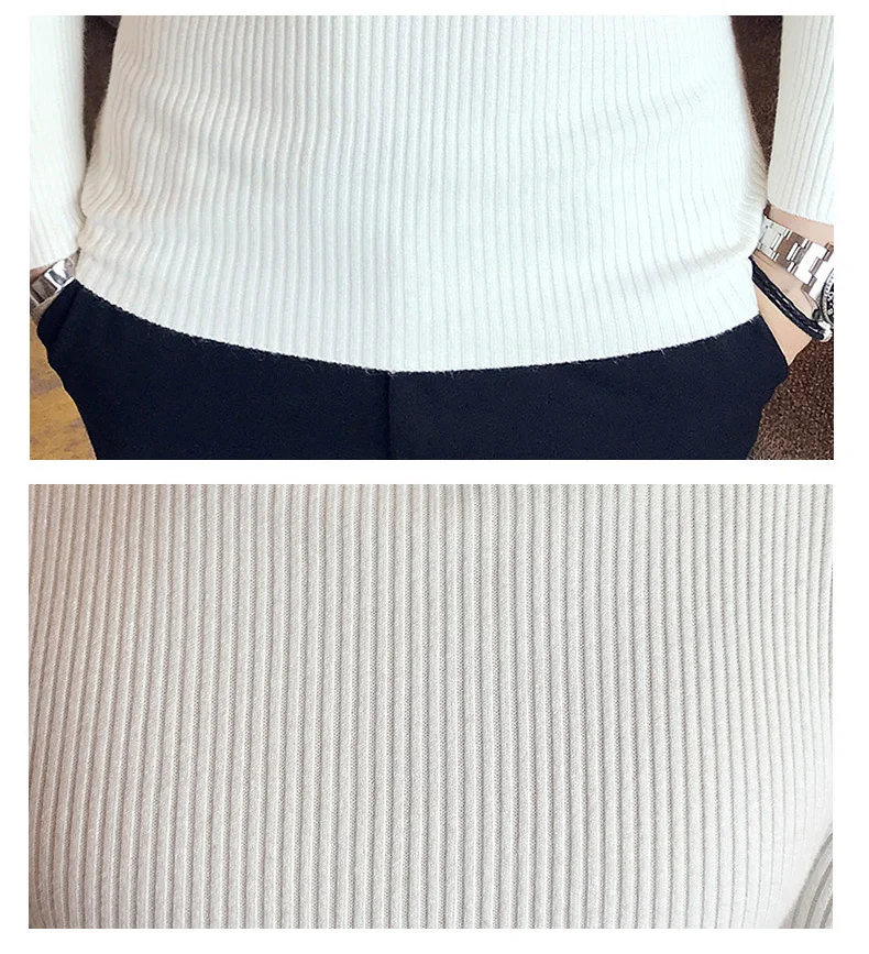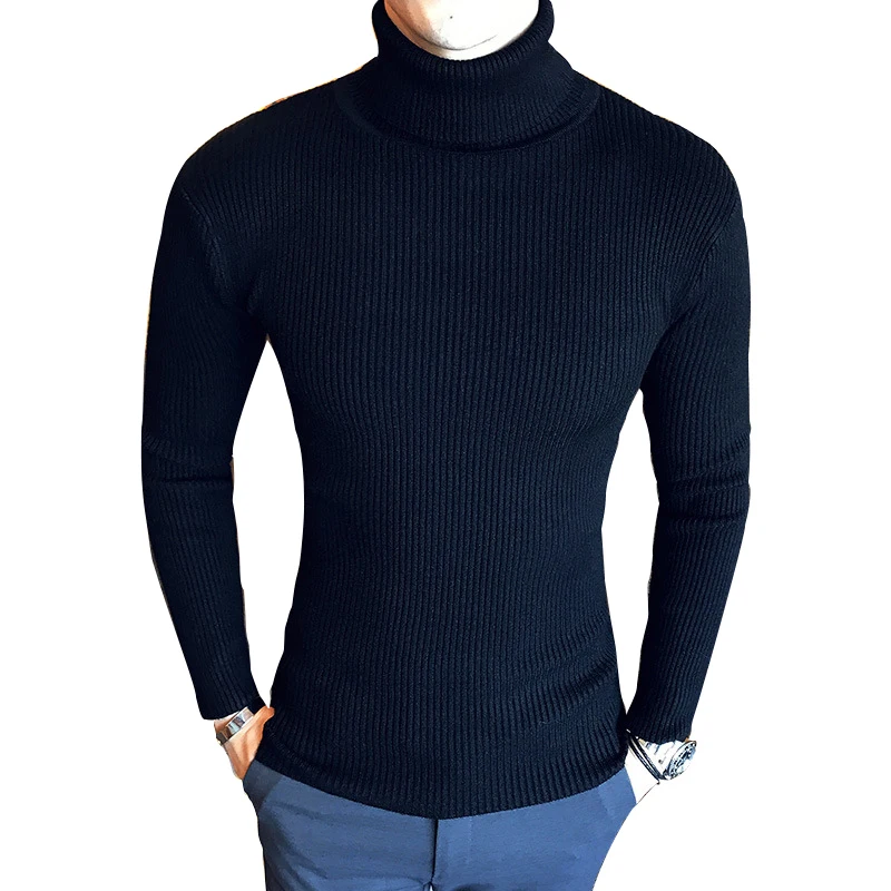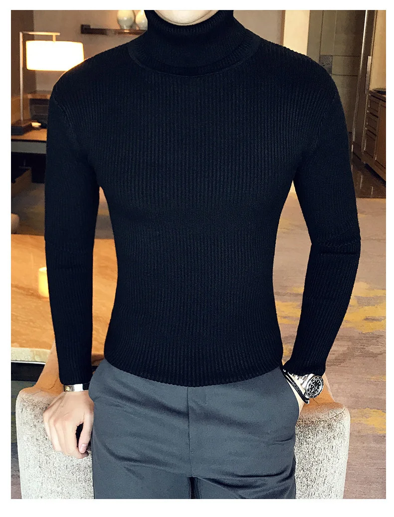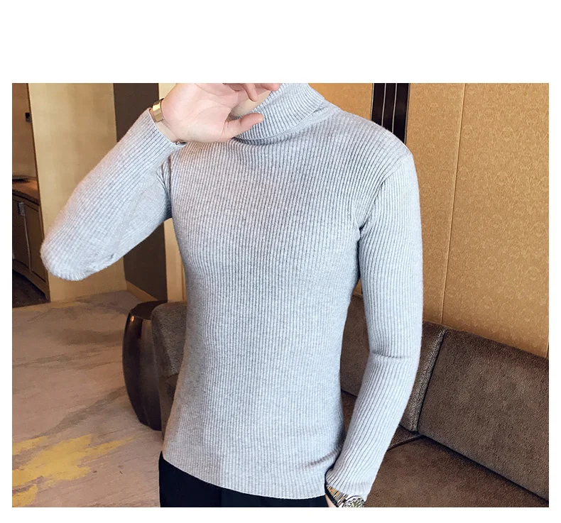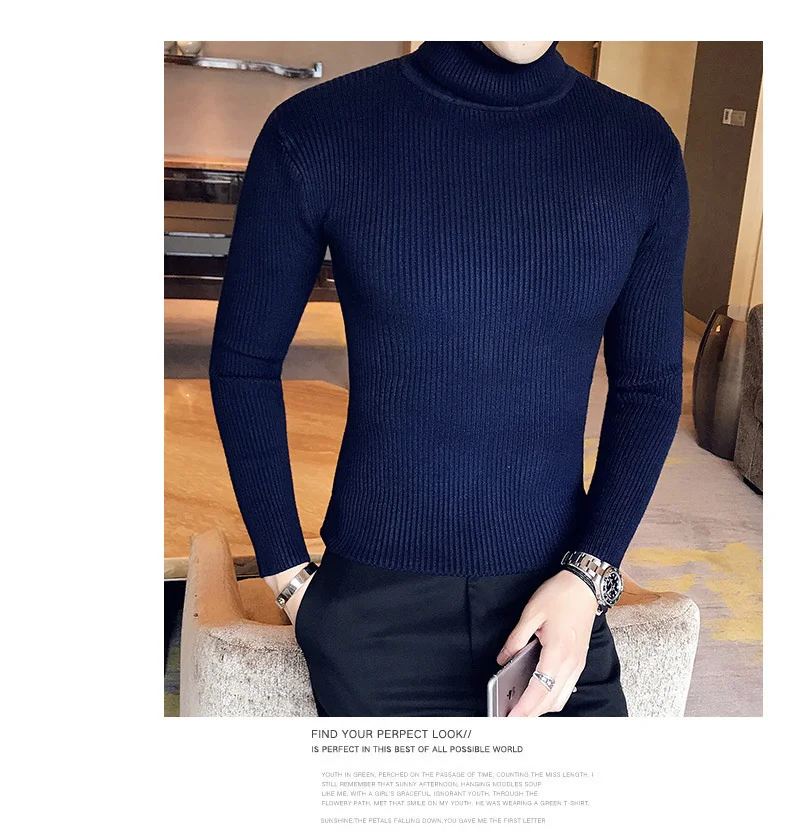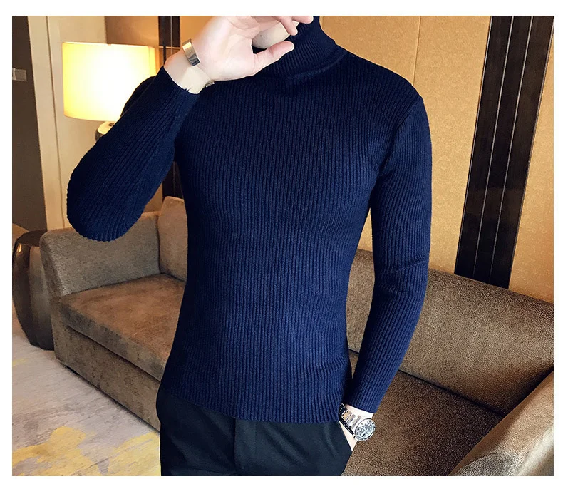 Мужской облегающий свитер-водолазка, однотонный трикотажный пуловер, Осень-зима 2019