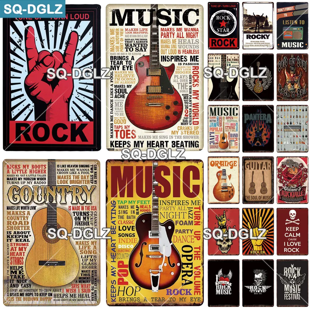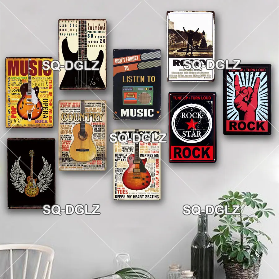 SQ-DGLZ металлический знак для музыкальной гитары, настенное украшение, жестяной знак, винтажные металлические знаки, домашний декор, картина, таблички, художественный плакат
