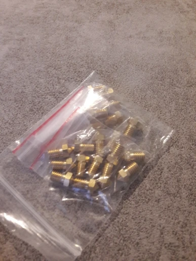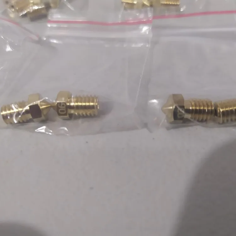 Все бы хорошо, но вот при сравнении диаметра отверстия с эталонным, глазу через прибор видно, что диаметр отверстий меньше на почти десятку, а это много. В остальном вполне годные сопла за свою цену. Я только собираю свой первый принтер, потому все тщательно проверяю, что приходит из поднебесной. И еще, я станочник в прошлом, отсюда и определение разницы в десятку на глаз.