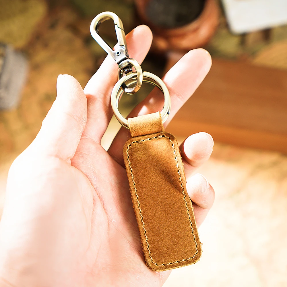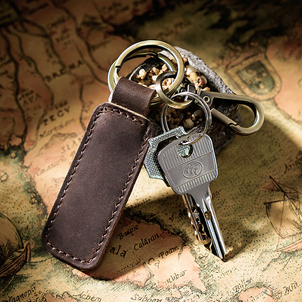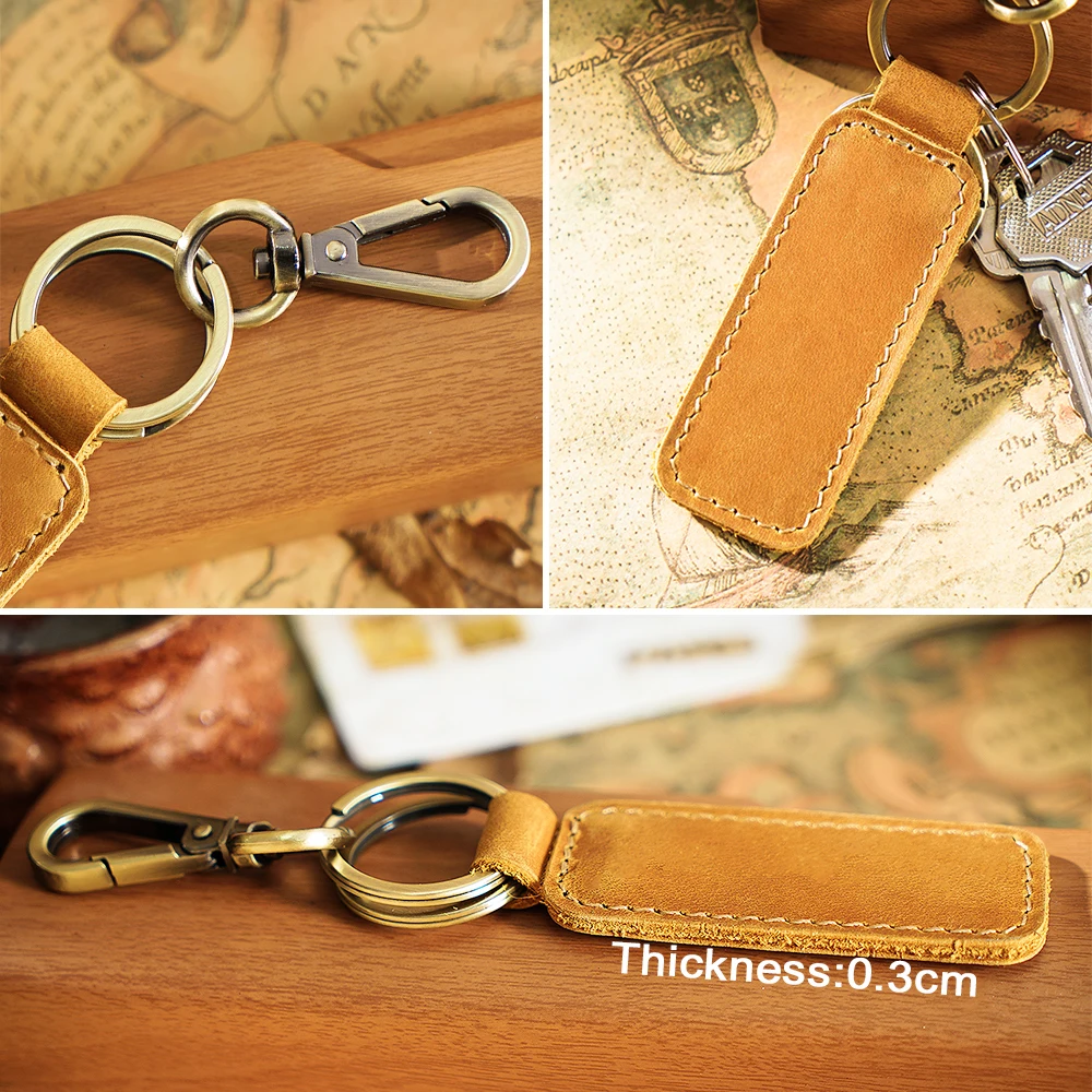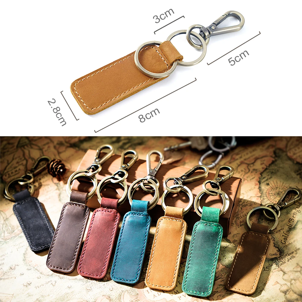 100% натуральная кожа брелок для автомобиля Высокое качество ключница Мужская Crazy Horse коровья кожа винтажный брелок с крючком кольцо небольшой подарок