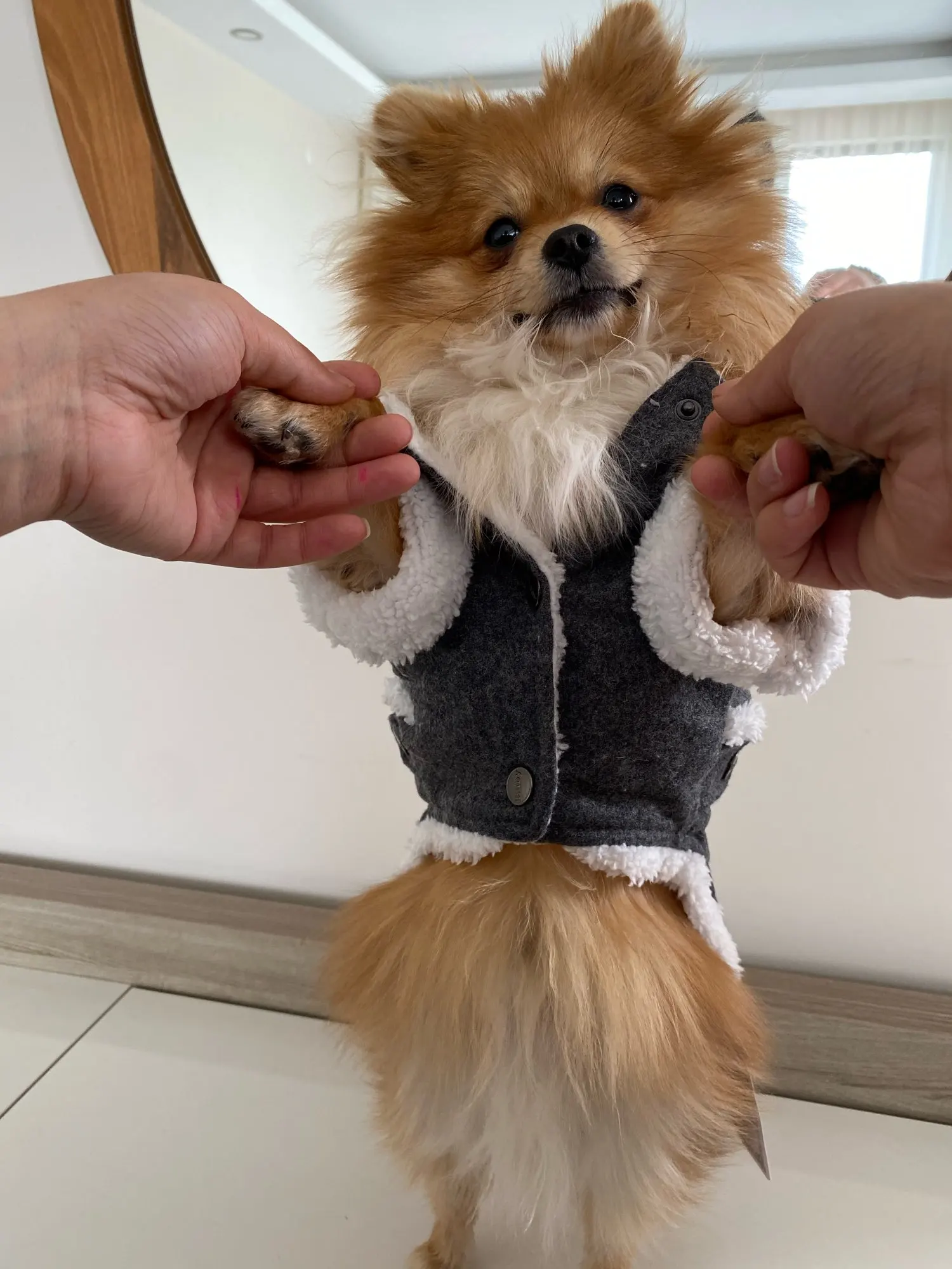 Хорошее пальтишко, но на нашего котика пять кг, маловато. Смотрится как пиджачок, но все равно нам нравится.