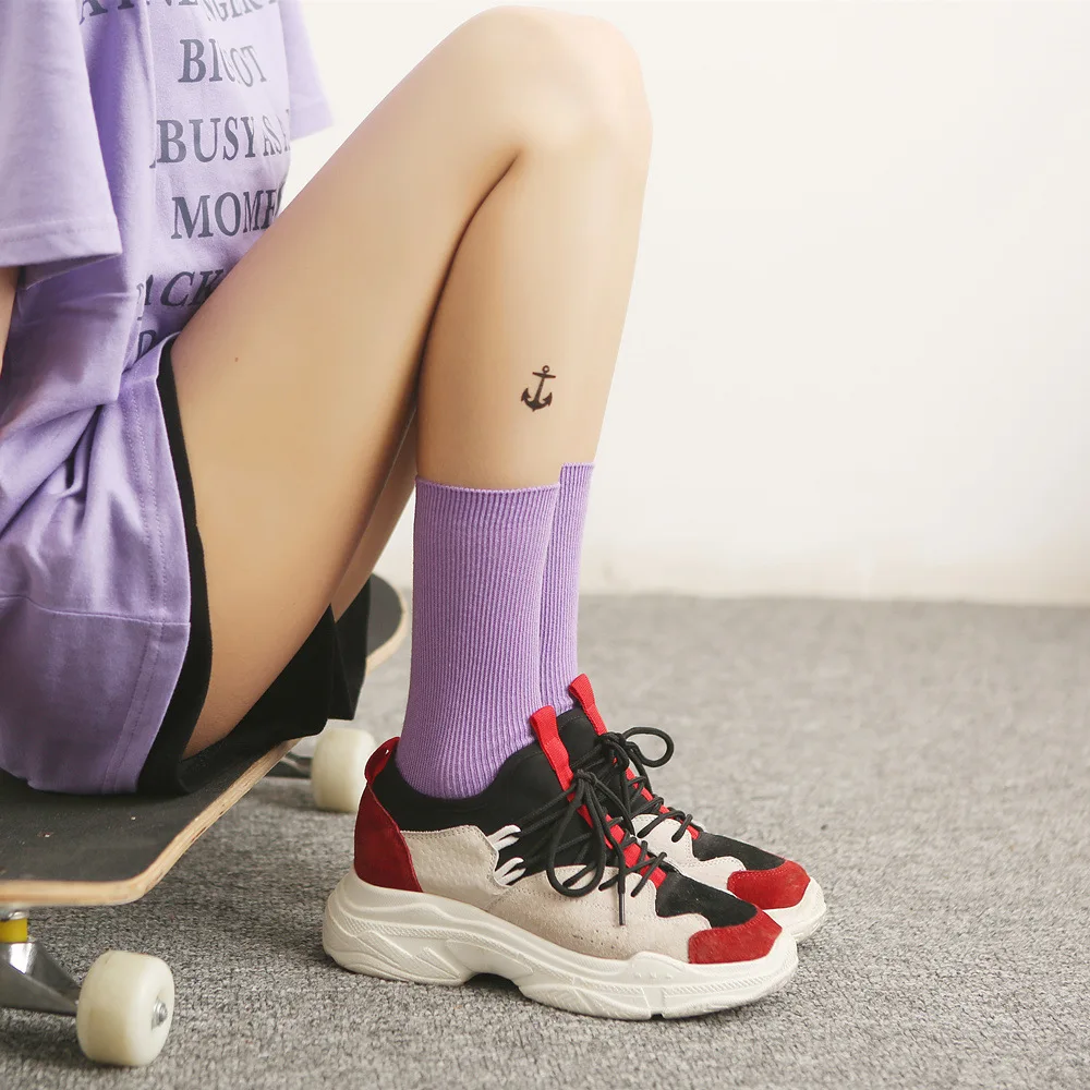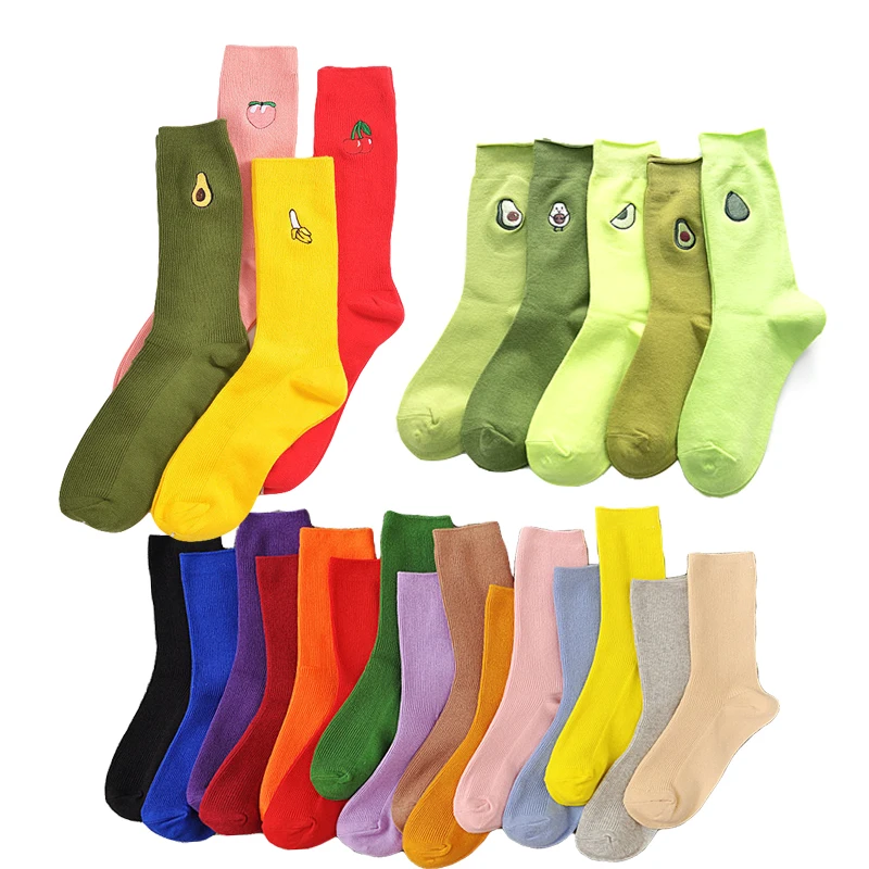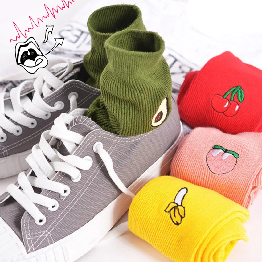 Женские хлопковые носки с фруктовым принтом Yeadu, длинные разноцветные забавные Женские носочки с вышивкой в стиле ретро, разноцветные чулки для девочек