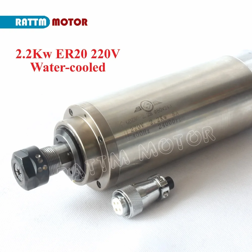 RU корабль2 кВт с водяным охлаждением, двигатель шпинделя с ЧПУ 80x213 мм ER20 220 В 3 подшипника 220 В для фрезерного станка с ЧПУ