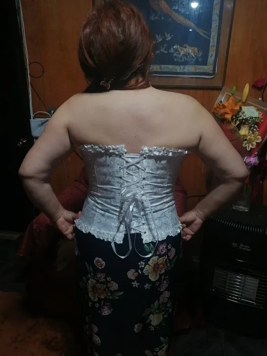 muy hermoso y perfecto, elegí talla S y corresponde porque la idea es apretar, traté de sacar fotos lo mejor que pude, hay que arreglar las tiritas de atrás para que quede más cómodo al apretar como si fueran cordones de zapato, pero de verdad es recomendable comprar! es mi primer corsé y me ha encantado...