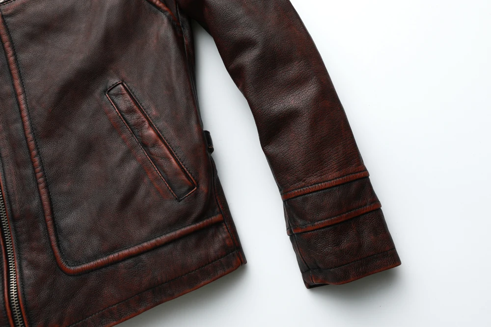 Мужская кожаная куртка MAPLESTEED, винтажная куртка из 100% натуральной воловьей кожи Красного и коричневого цветов, зимнее пальто с рукавами 62-68 см, 5XL, M100