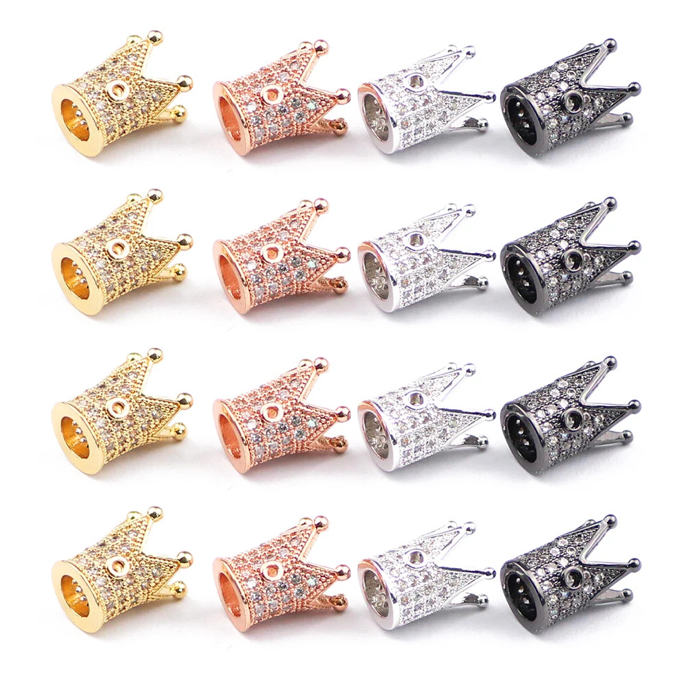 BTFBES Высокое качество 8 мм Корона медные бусины 4 шт. белый циркон микро паве амулеты свободные бусины для изготовления браслетов ювелирных изделий DIY аксессуары