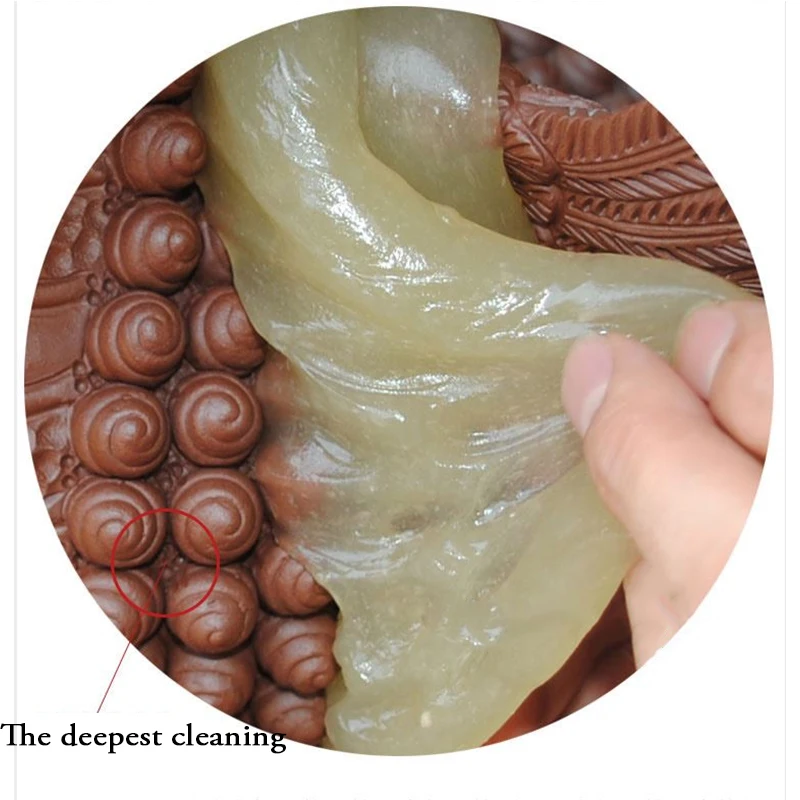 Полужидкий материал, легко попадающий в прочную поверхность или узкие трещины и другие труднодоступные места, сильный липкий мусор, волосы, мусор, пыль и оставить на ощупь аромат.