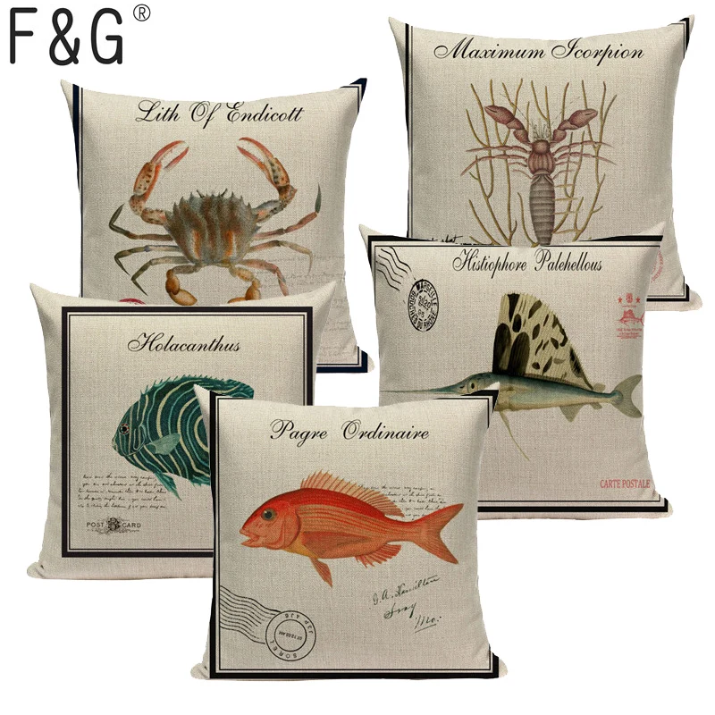 Винтажные декоративные подушки, морские красочные рыбки Almofadas 4...