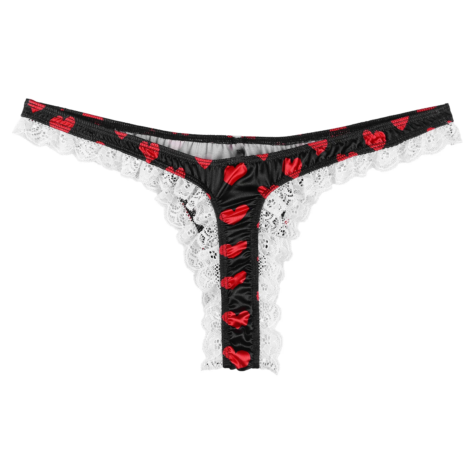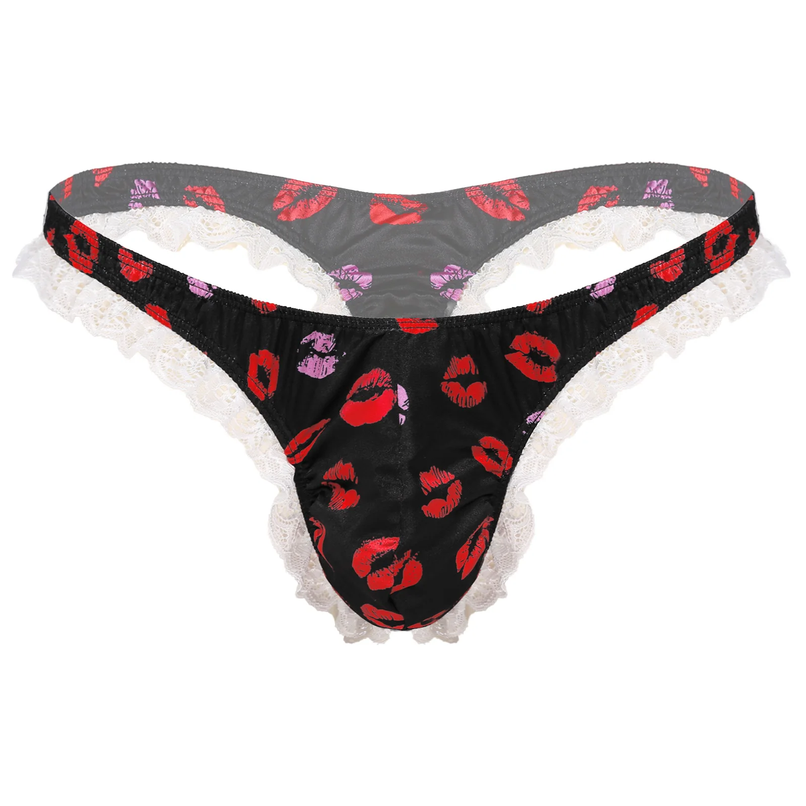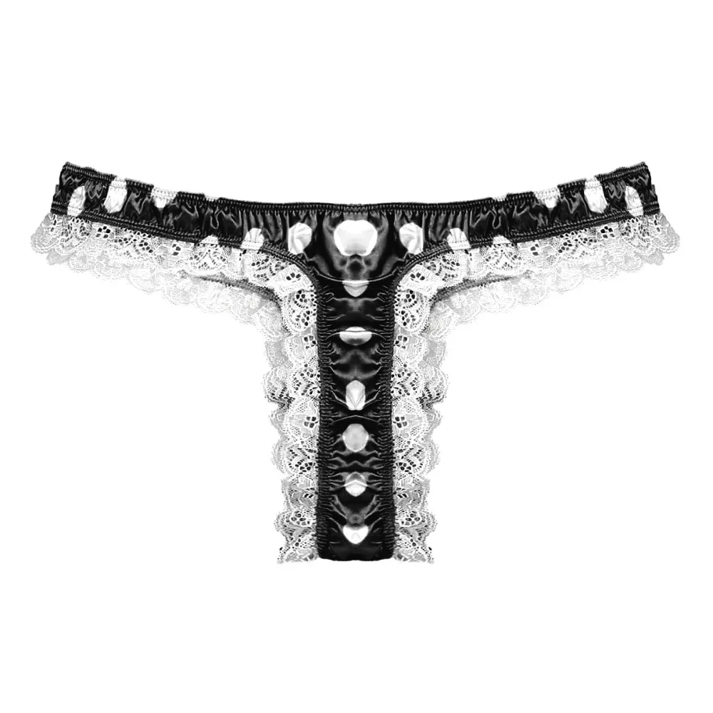 MSemis мужские трусики нижнее белье блестящего атласа с оборками в горошек, украшенное кружевами бикини стринги нижнее бельё для девочек High Cut Мешка нижнее белье