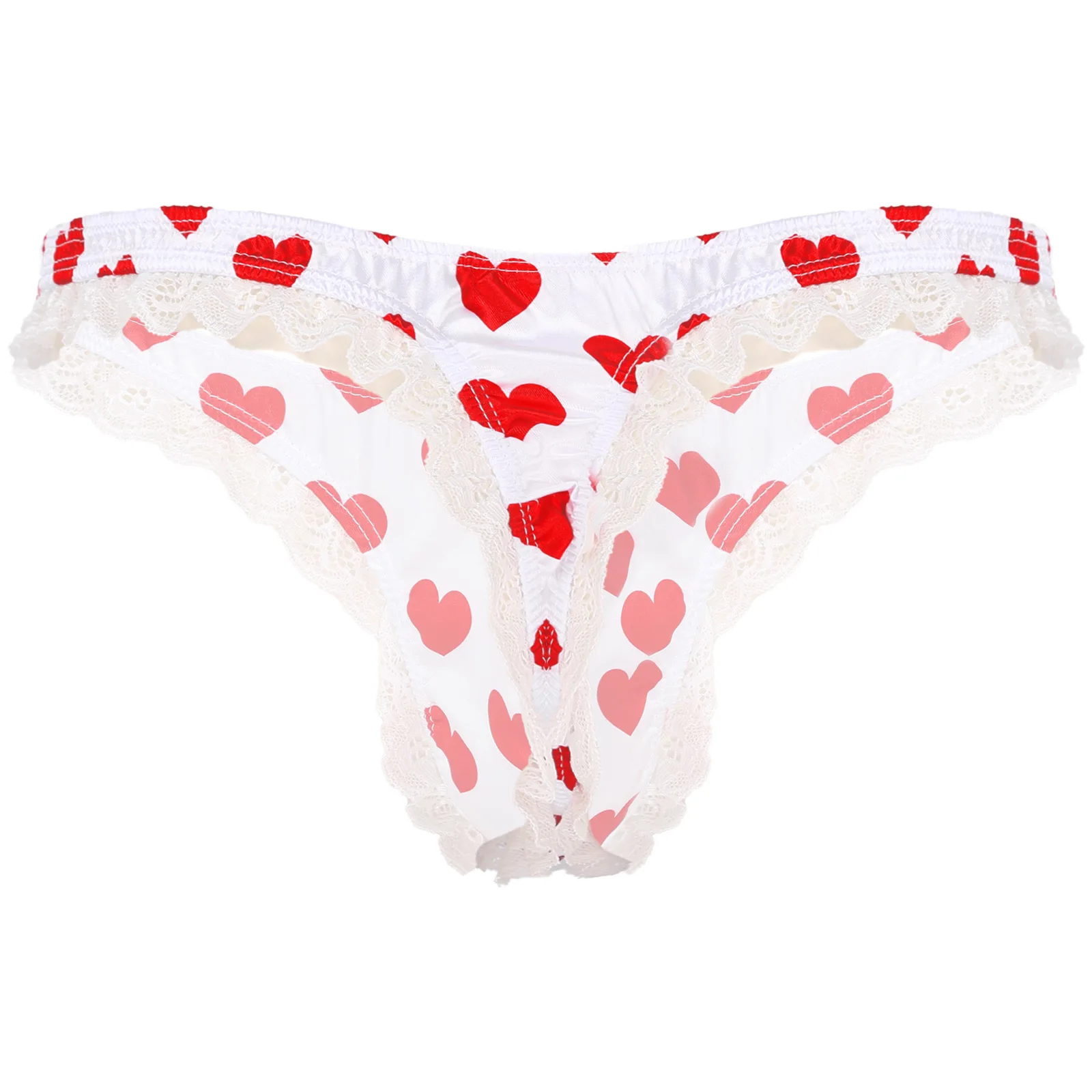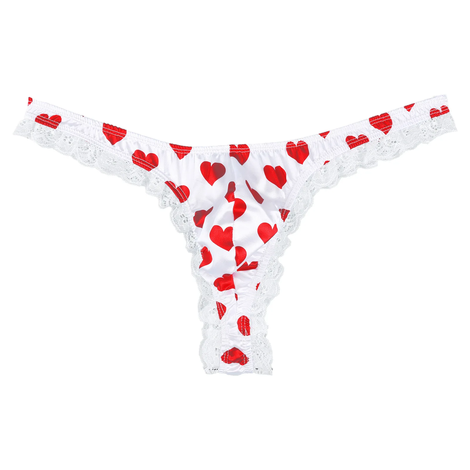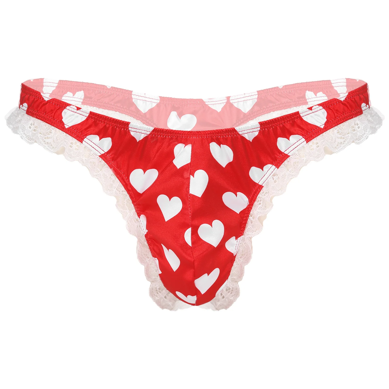 MSemis мужские трусики нижнее белье блестящего атласа с оборками в горошек, украшенное кружевами бикини стринги нижнее бельё для девочек High Cut Мешка нижнее белье
